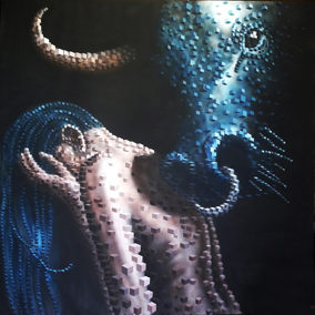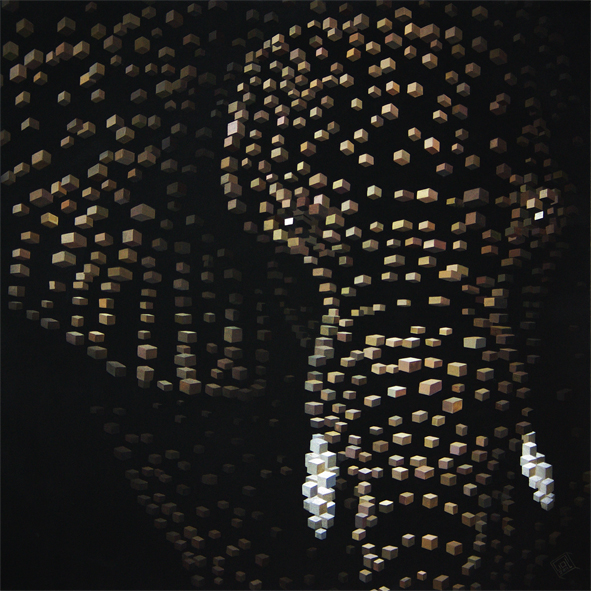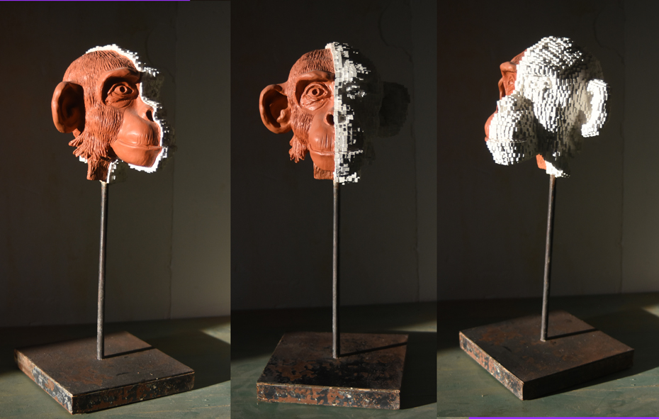 Cette vision des organismes en pixels cubes, permet un traitement plastique moderne (peinture, sculpture, gravure) proche de l’esthétique numérique , tout en effectuant un travail pouvait paraitre traditionnel.