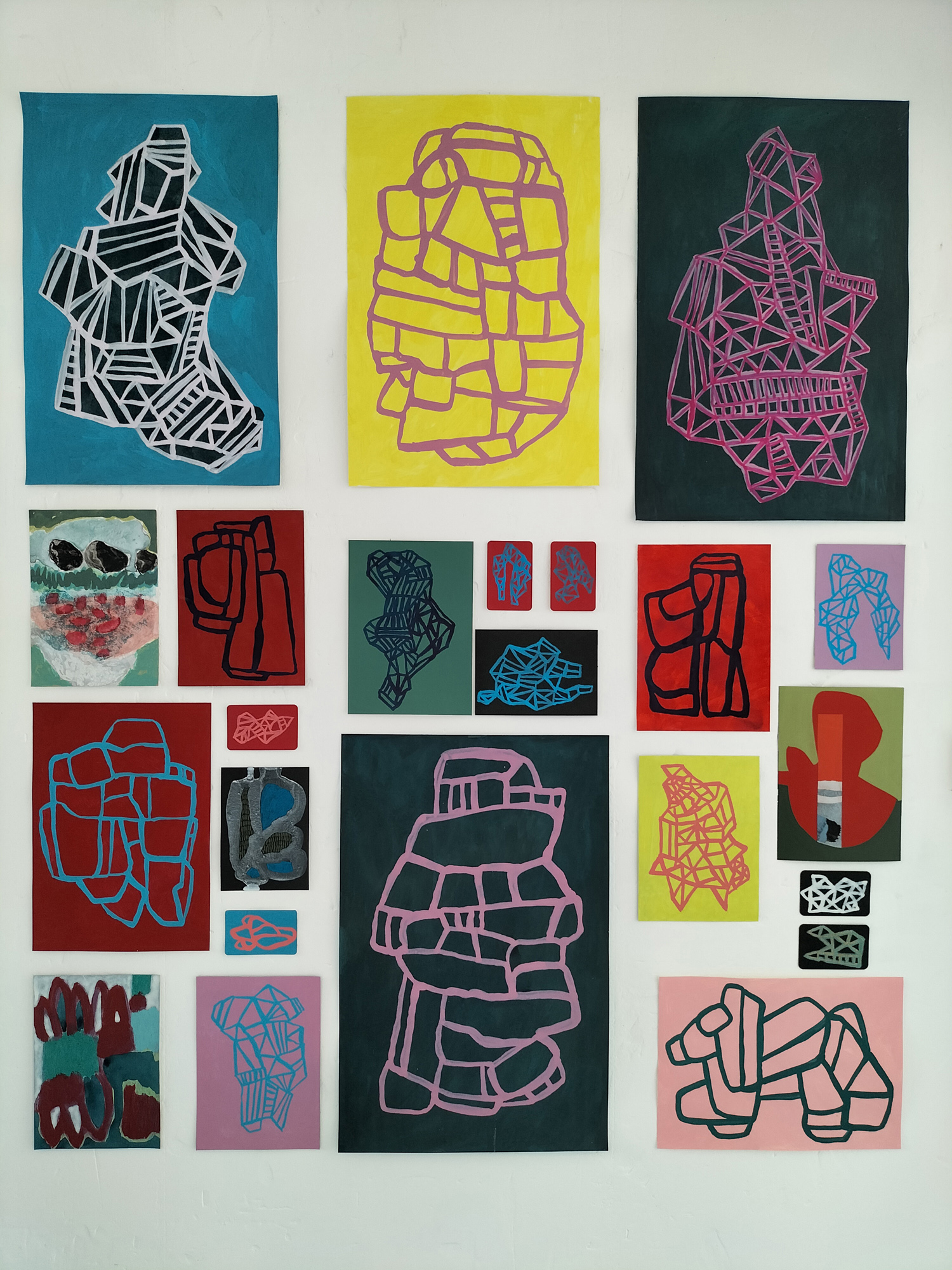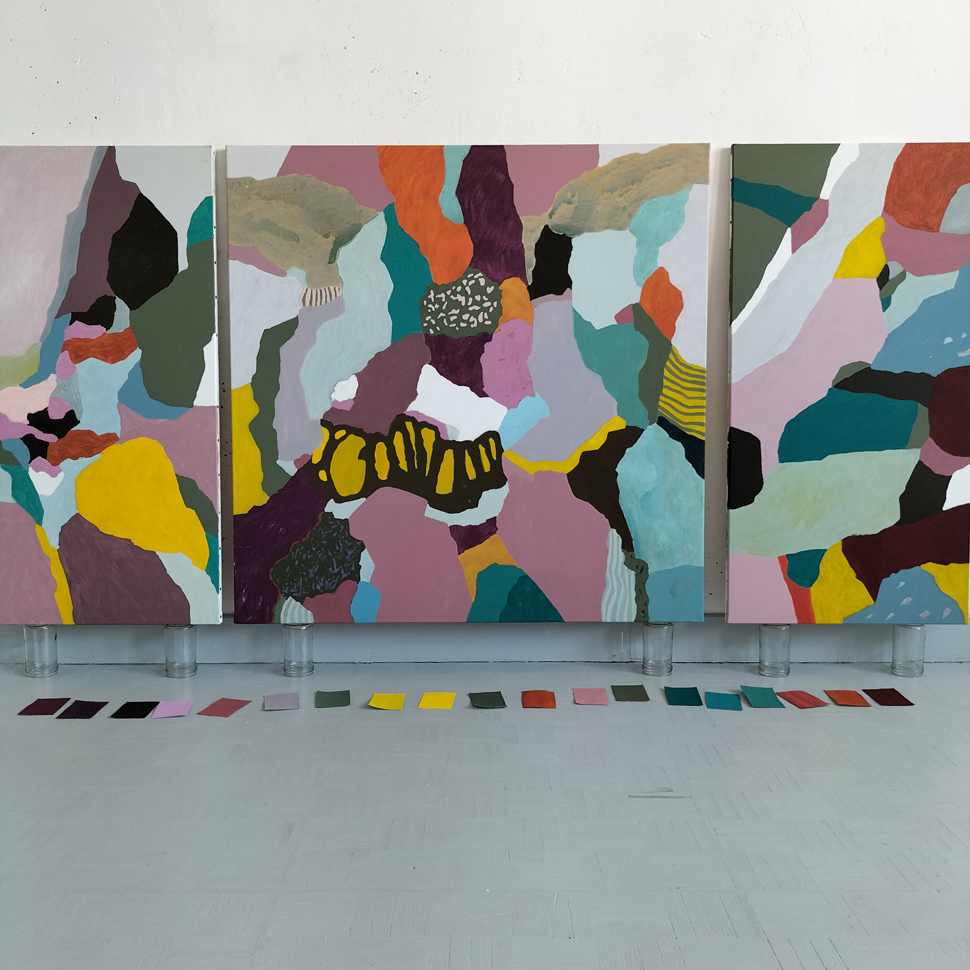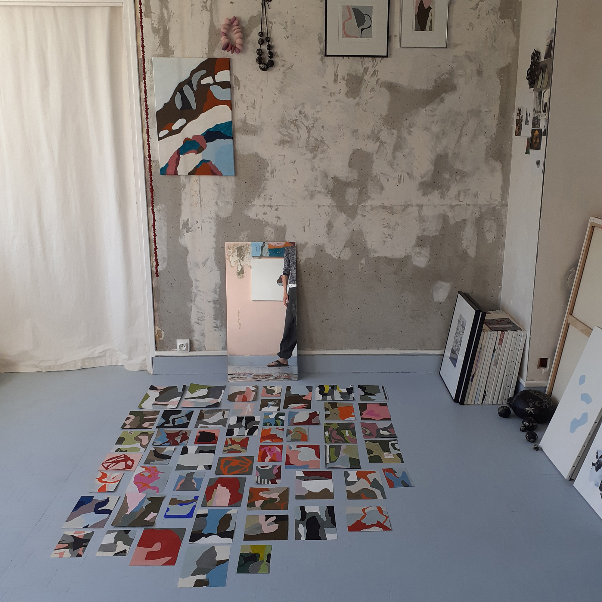 Aujourd’hui je me consacre à ma pratique artistique qui s’articule autour de la peinture, du collage, de la photographie et du volume. Ces différentes approches sont complémentaires, se nourrissent, se répondent, invitant aux variations. Les séries s’interrompent et reprennent dans un temps que je qualifierais plutôt de circulaire (non chronologique), alimentées, enrichies, par ce qui traverse ma vie.