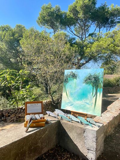 Le jardin, aux beaux jours, prolonge l’atelier et permet de peindre en immersion totale dans la nature.