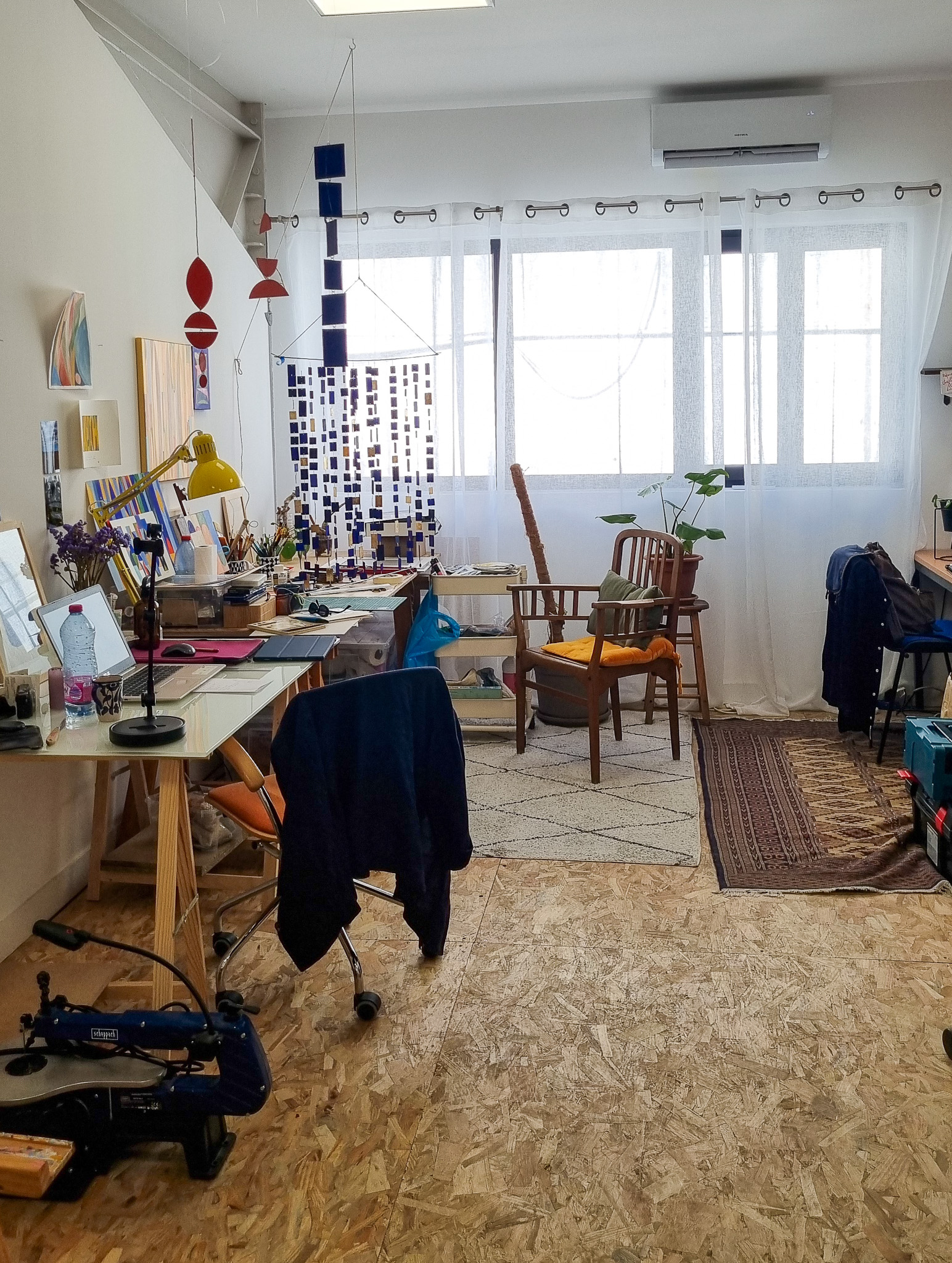 Mon travail, situé à l’intersection de plusieurs disciplines, se développe principalement entre la peinture et les objets sculpturaux, articulant des techniques mixtes d’acrylique et d’huile à la céramique et du bois. La recherche part d’un intérêt pour la forme et la couleur en tant qu’éléments constructifs, capables de générer des compositions géométriques marquées par l’équilibre, la tension et le contraste.