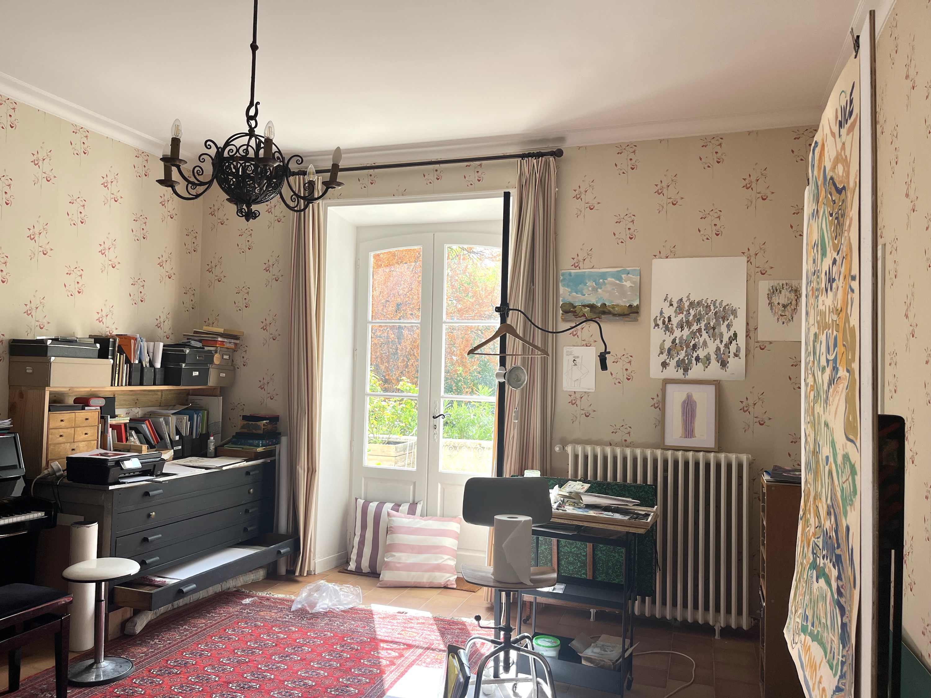 Installé depuis 3 ans en Occitanie, je travaille dans plusieurs lieux : une pièce de la maison pour mes dessins et mes aquarelles, un atelier dans une grange pour la sculpture et dans une autre grange pour la sculpture monumentale et autres travaux de grandes dimensions.