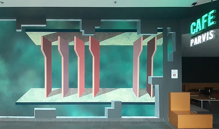 Rébecca Konforti s’intéresse à ce qui n’est pas en pleine lumière, ce qui est en marge, tabou ou invisibilisé. Pour questionner notre regard et nos sociétés elle utilise le trompe l’œil, le montage d’image et le langage pictural. Elle utilise les mêmes principes d’enchevêtrement d’espace dans ses peintures murales que dans ses dessins.