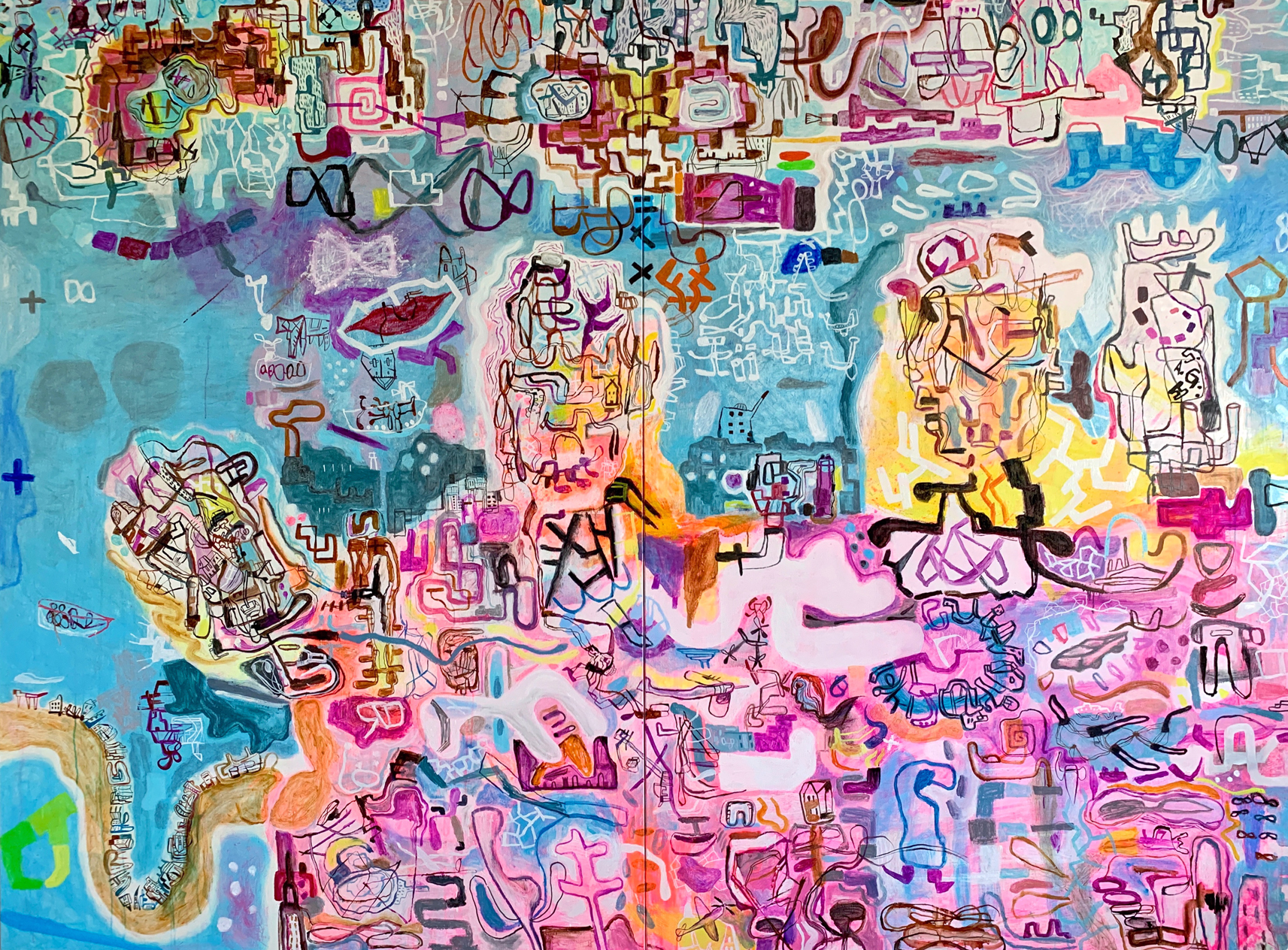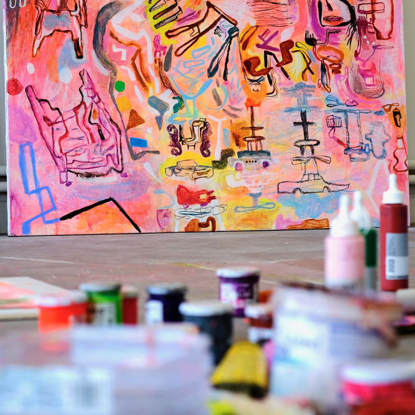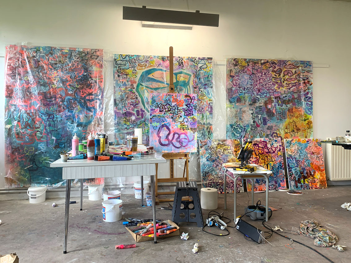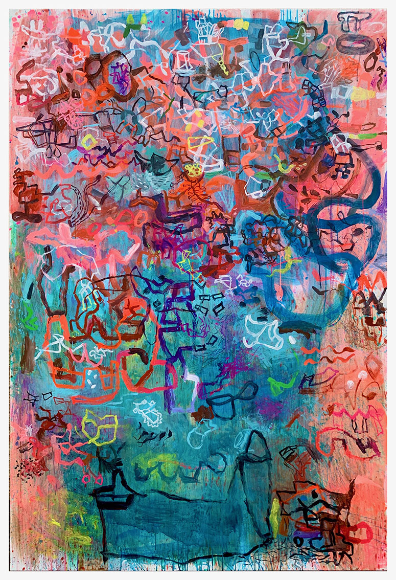 Les grandes métropoles avec leur architecture complexe, leurs foules en mouvement et leurs réseaux denses, nourrissent sa vision artistique. Gash ne cherche pas à reproduire fidèlement ces espaces, mais à en capturer l’énergie et l’essence. Ses peintures ressemblent à des cartes imaginaires où chaque ligne et chaque couleur traduisent des émotions ou des souvenirs liés à ces lieux.