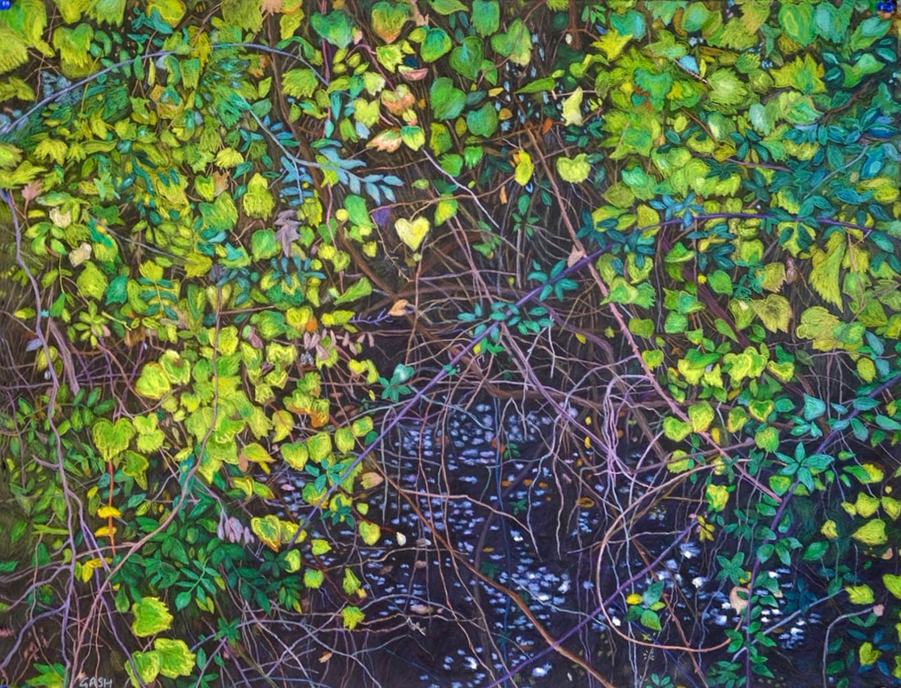 Depuis son installation en milieu rural, Gash intègre de nouveaux éléments dans son travail. Les paysages naturels et les éléments organiques se mêlent désormais à ses représentations urbaines, créant un dialogue entre la nature et la civilisation. Cependant, même dans ces œuvres, l’influence de son passé urbain reste palpable.