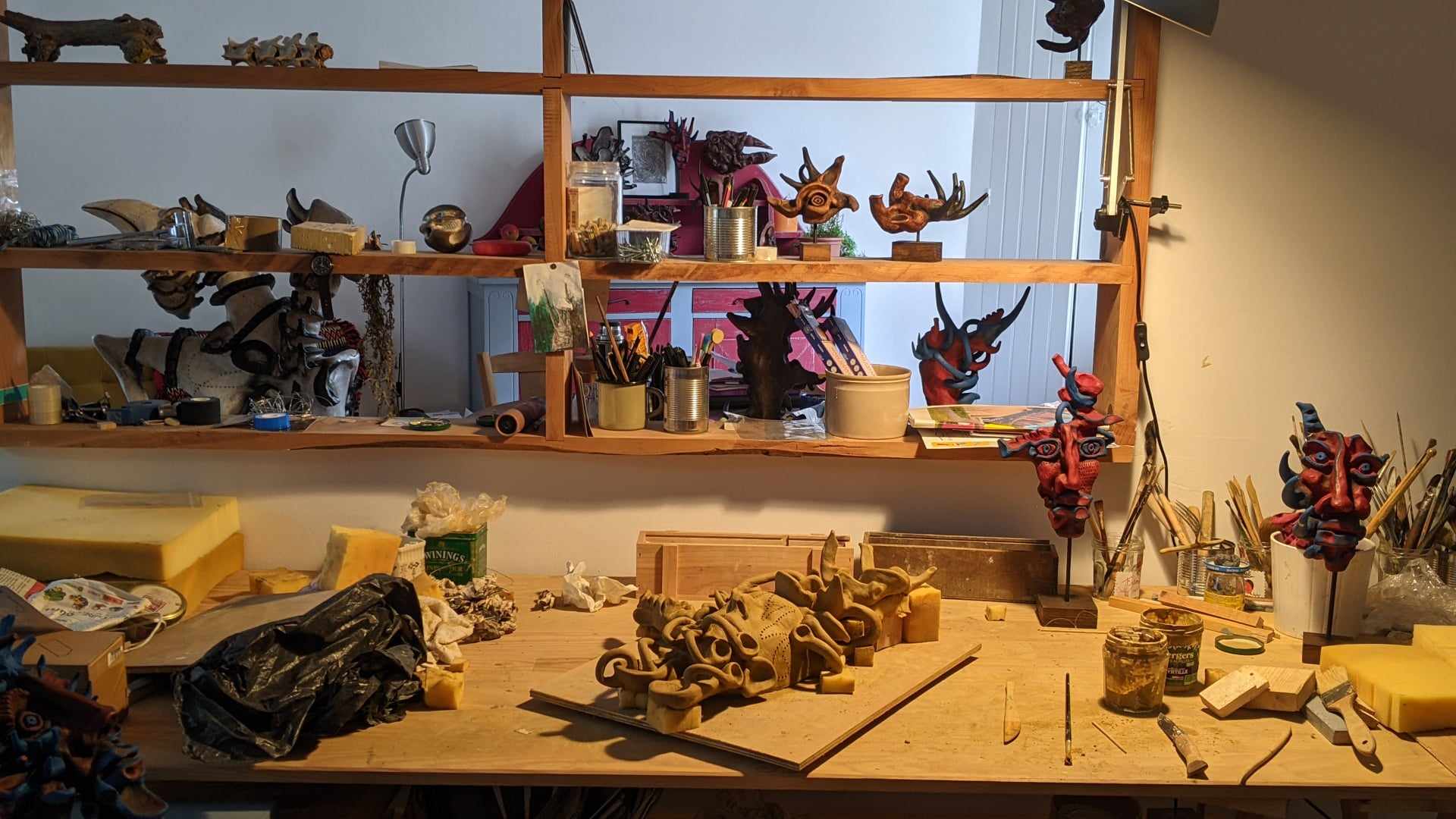 J’aime décliner des séries ou, en changeant de support, varier les volumes, exploiter la profondeur… Je suis en recherche de modes de représentations de mes impressions, de mon empreinte, de mon monde imaginaire à travers un langage plastique qui m’est propre. Laissant mes émotions s’exprimer librement je raconte des histoires qui s’inventent elles-mêmes.