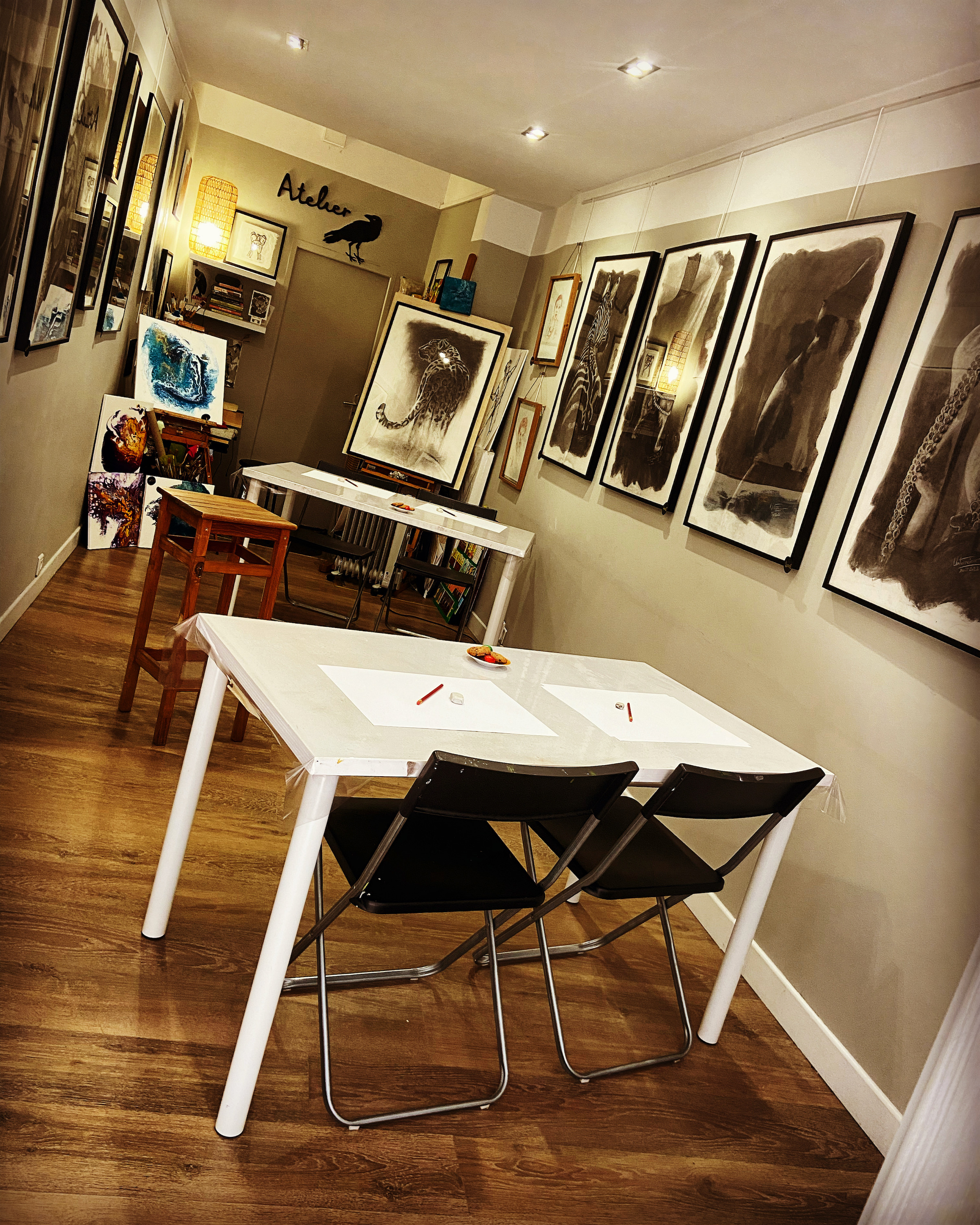 L’atelier est un endroit où je crée, j’expose mon travail, je donne des cours aux adultes et aux enfants de plus de 6 ans, et je le loue de temps en temps à des artistes.