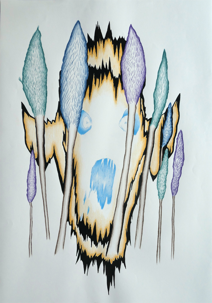 Virginie Loze crée un univers peuplé de créatures hybrides troublantes, en proie à des métamorphoses facétieuses. Nimbées de couleurs luminescentes, surgissent des grotesques en apesanteur dans des fragments d’histoires, personnelles et collectives aussi insolites que des images-rêves. L’imaginaire, l’inconscient, la surprise, sont à la source de cette démarche singulière résistant au rationalisme par la force du symbole et la puissance des images mentales. Les formes énergiques et énigmatiques révèlent à travers le prisme de l’humour et de la subversion, les menaces qui défient l’individu et les atteintes portées à son intégrité. L’artiste a commencé par des dessins à la ligne claire sur différents formats, évoluant avec l’intégration de fragments vidéo projetés. Ils s’agissaient de spectres de personnages ou de fragments de corps préalablement filmés se déplaçant sur le dessin et interagissant avec le tracé. Aujourd’hui, elle utilise le dessin et la peinture acrylique sur toile, lui permettant de déployer son oeuvre. L’artiste réalise aussi des commandes in situ sous la forme de fresques monumentales.