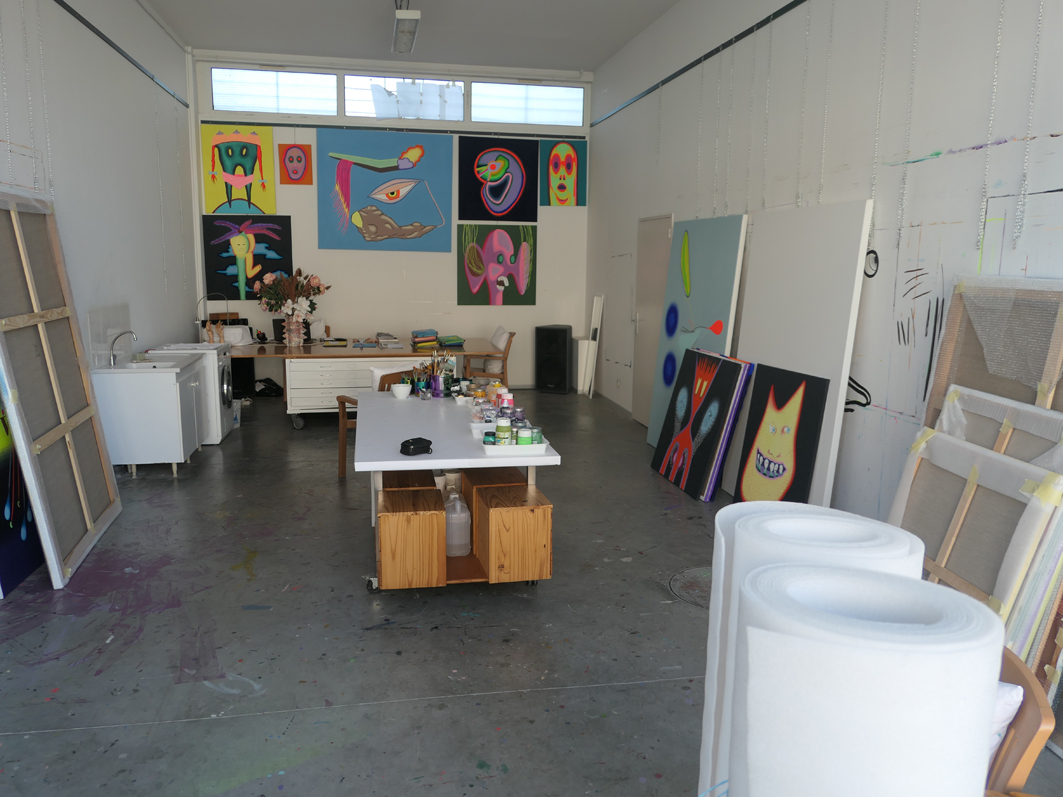 C’est un atelier professionnel mis à disposition par la DRAC Occitanie dans lequel je travaille quotidiennement depuis 2014. Il est situé en bordure du lac de la Reynerie.
