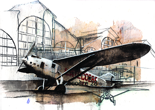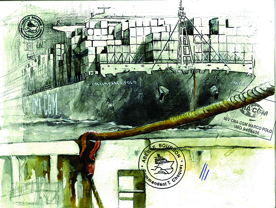 Diplômée d’illustration scientifique et technique. Après mes études j’ai pris un autre cap, celui de voyager et surtout naviguer, dessiner, écrire, photographier, peindre et graver. Je travaille embarquée (marine nationale ou marine marchande), au plus prés des équipages. Viscéralement amoureuse de la mer et des ports, j’en fais mon terrain de jeu préféré. Mais pas seulement : les avions et l’épopée de l’Aéropostale font partie de mon travail, l’Andalousie et l’identitaire fort du flamenco etc…Je peins sur voiles, je remplis des carnets de voyage qui sont édités chez Magellan&Cie. Je travaille seulement à l’encre et pigments, sur les voiles , les cartes marines et dans mes carnets. Je ne cède à aucune mode et obéis toujours à mes intuitions, je suis une électron libre pluri-indisciplinée.