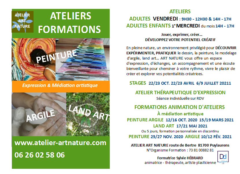 ATELIERS D’EXPRESSION PEINTURE ARGILE LAND ART ouvert aux adultes, adolescents, enfants, parents-enfants, familles