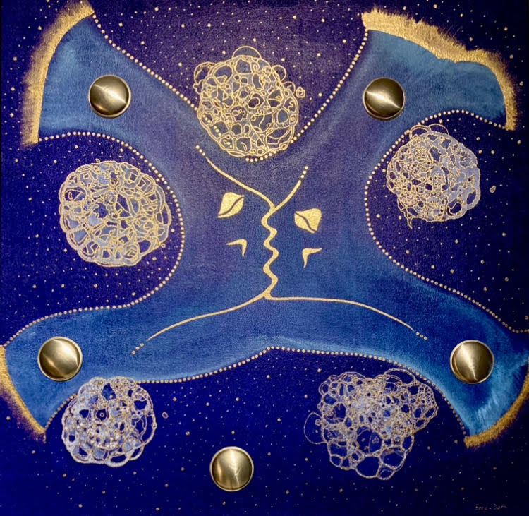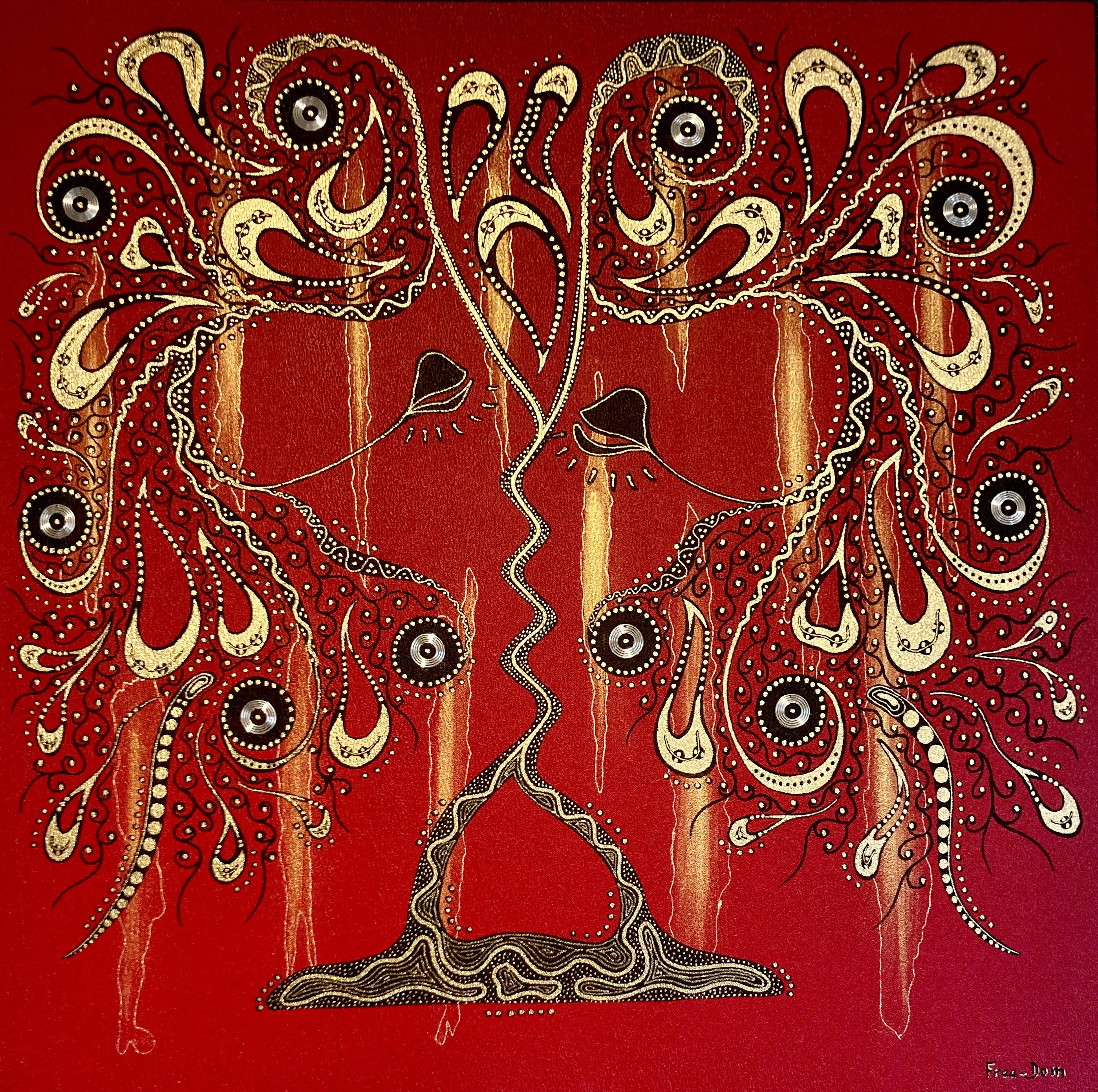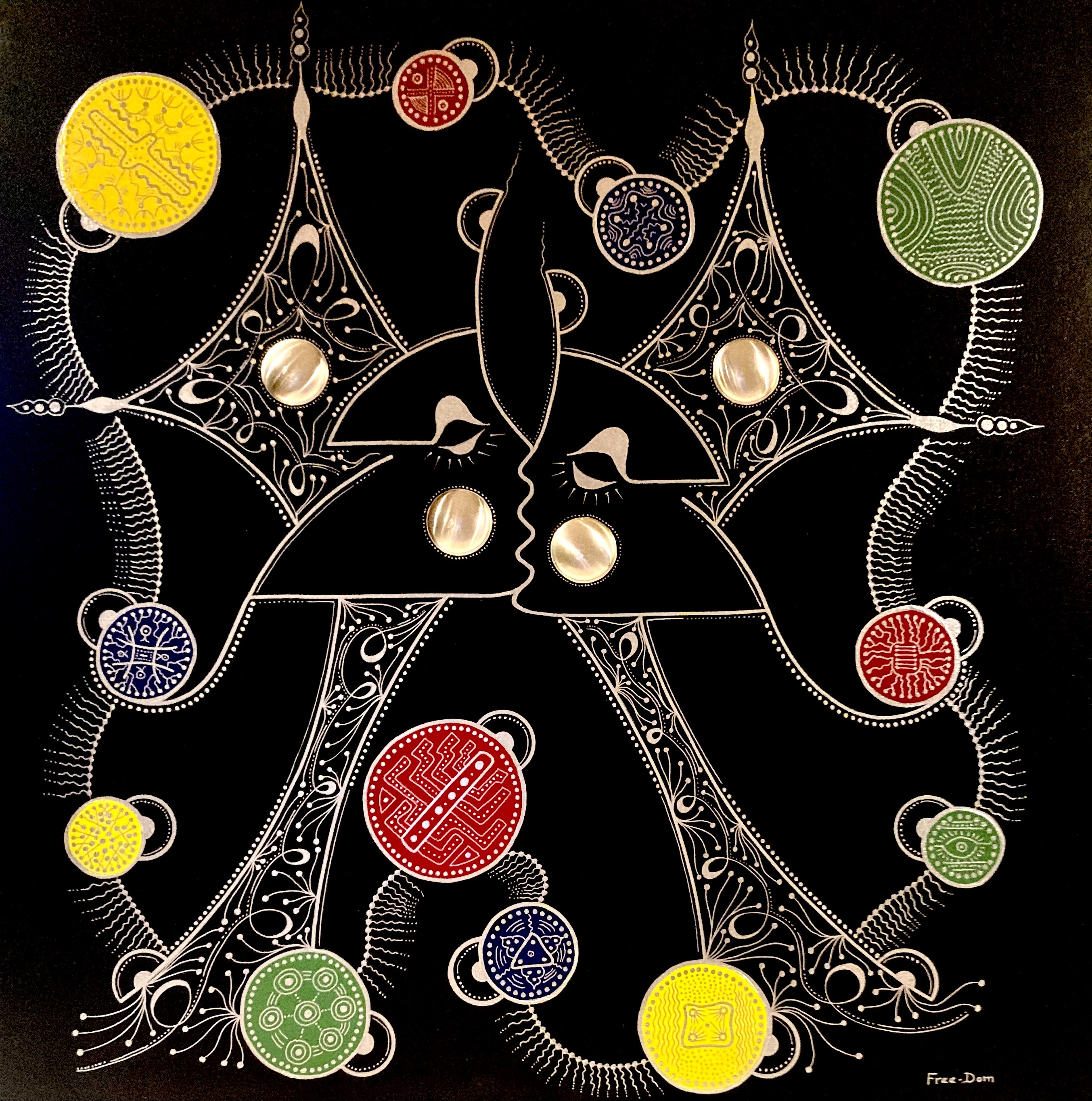 Ces baisers surréalistes entrelacés sont également nourris de références culturelles liées à des expériences de vie en Orient, en Afrique et en Asie. Free-Dom connecte ainsi toutes ces influences en un processus de création plutôt libre et joyeux en espérant créer des émotions.