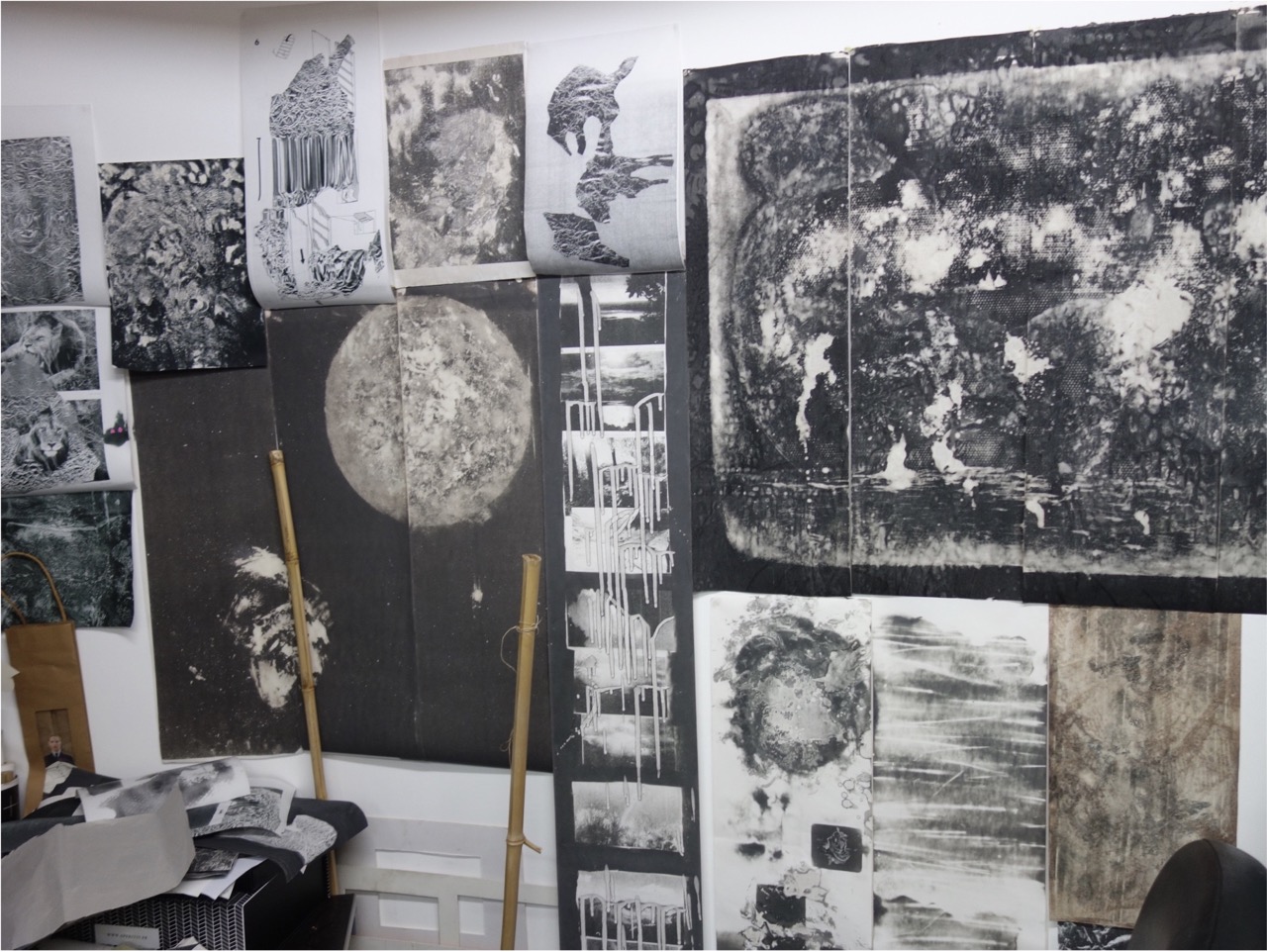 "Une partie de ma recherche a trait à l’exploration au long-cours du papier thermique en tant que médium constituant une surface d’accueil idéale pour des formes en latence, une zone d’incubation picturale, graphique, photographique même. Dans le temps, l’image y apparait puis disparait, chaque fois différemment ; son séjour dans le visible est par nature éphémère, évanescent et fluctuant.(..)"