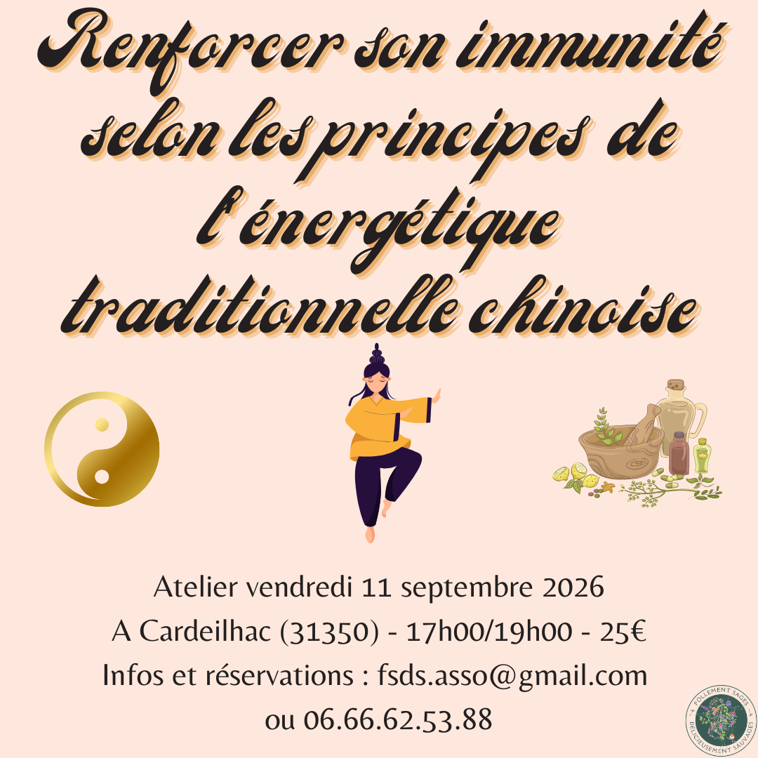 Venez découvrir les principes de la médecine chinoise dans la prise en charge du bien-être global et comment renforcer son immunité au quotidien à travers le mouvement sous forme d’exercices simples mais aussi avec des conseils en diététique et en phytothérapie.