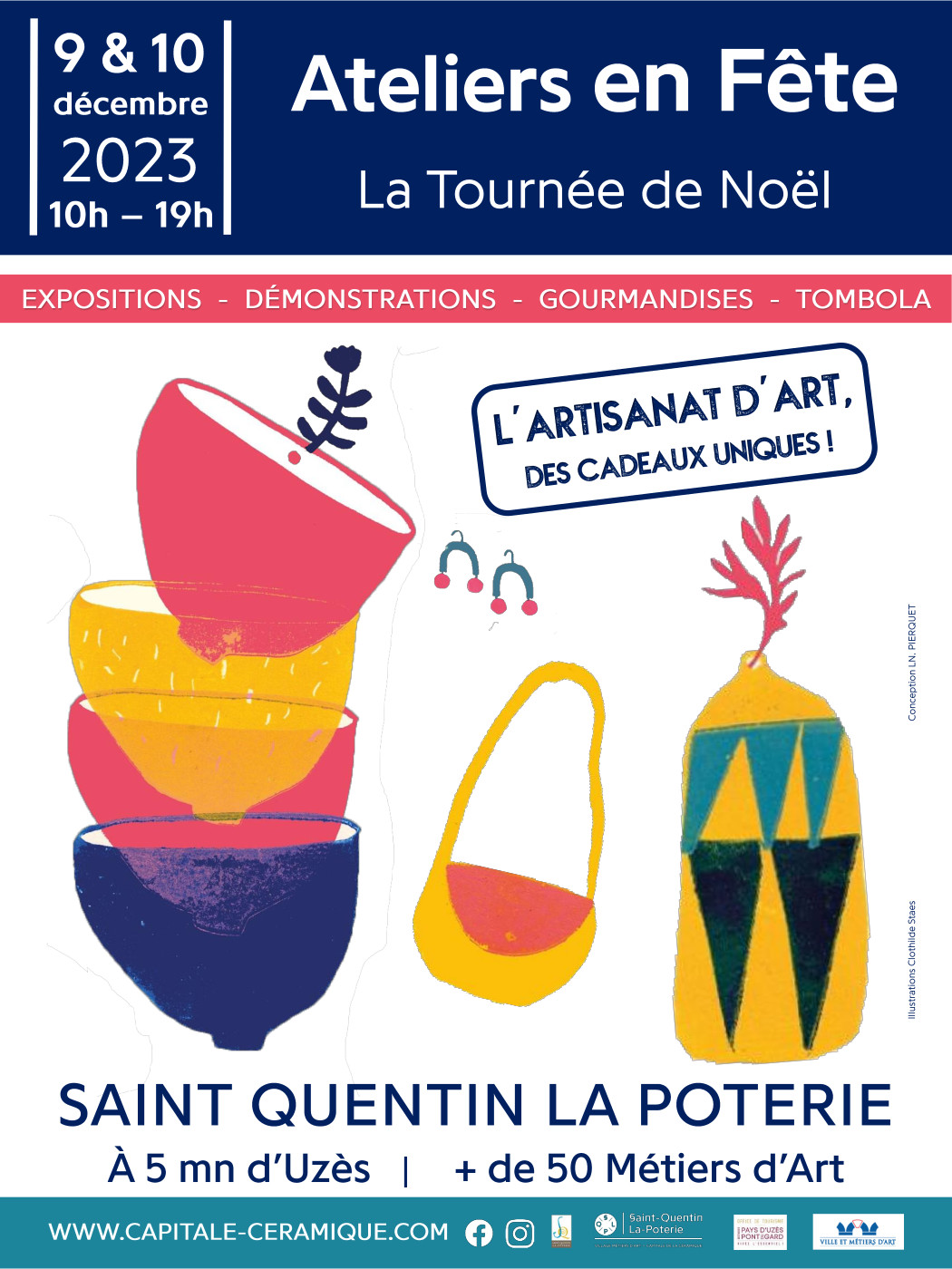 Les Ateliers de St-Quentin-la-Poterie invitent des artistes et artisans et vous proposent des expositions, dégustations, animations dans tout le village. Un moment convivial, culturel et de nombreuses idées cadeaux.