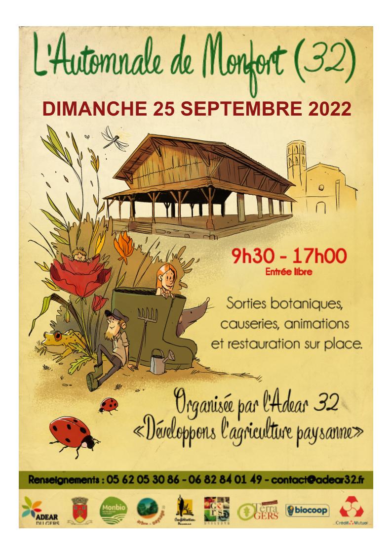 L’Automnale de Monfort est organisée par l’ADEAR 32 (Association pour le Développement de l’Emploi Agricole et Rural). Le but de la manifestation est la mise en avant des professionnels du végétal locaux travaillant dans le respect de l’environnement et des Hommes. L’Automnale de Monfort réunit chaque année une cinquantaine de producteurs et d’artisans liés au jardin ainsi qu’une dizaine d’associations. Son objectif est de permettre aux jardiniers de s’approvisionner auprès de producteurs locaux, proposant des plantes saines et robustes, adaptées au climat de la région. C’est aussi l’occasion de découvrir des techniques de jardinage respectueuses de l’environnement. Monfort est un village typique de la Lomagne gersoise.