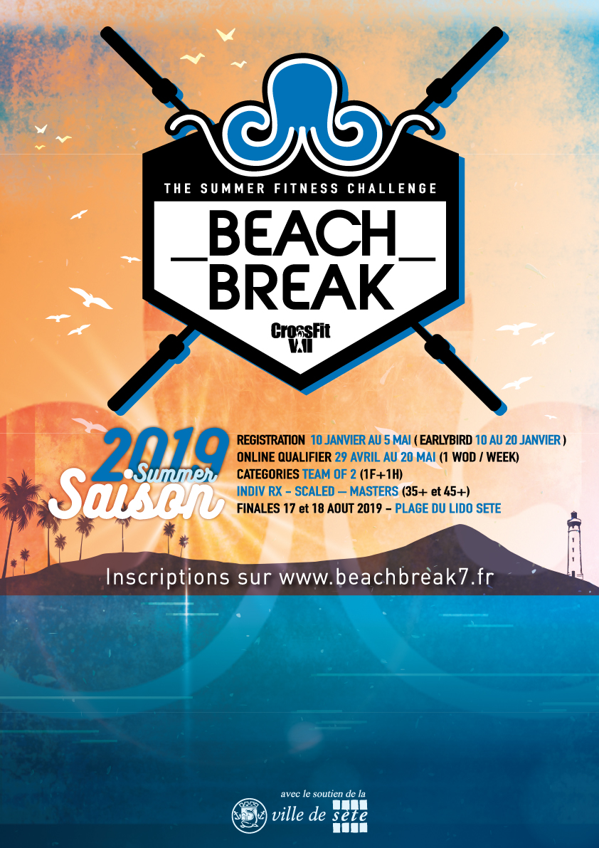 Le Beach Break 2019 est une compétition de CrossFit ® sur un site exceptionnel, sur la plage de Sète la Corniche à 100 metres de la mer. Pour cette troisième édition se sont plus de 600 athlètes qui seront sélectionnés au mois de mai, pour se retrouver en finales les samedi et dimanche 17 et 18 août 2019. D’envergure Nationale cette compétition de CrossFit ® réunira des athlètes de haut niveau de toute les régions de France mais aussi d’autres pays européens.