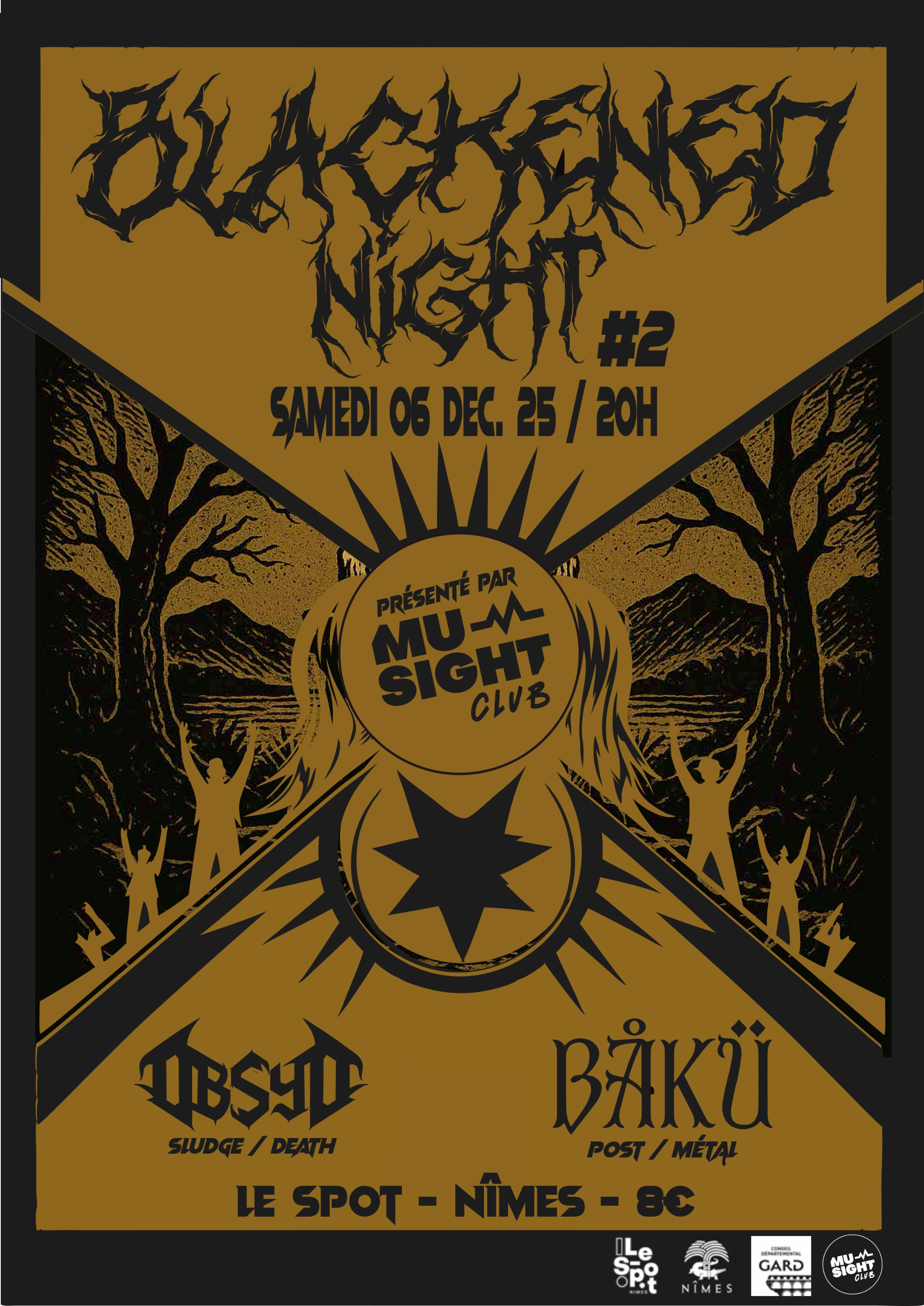 Pour sa seconde édition des soirées BLACKENED NIGHT au SPOT, le MUSIGHT CLUB creuse un peu plus le sillon en déterrant deux groupes des profondeurs de l’abîme. Toujours avec la volonté de mettre en avant des formations de la scène underground à la qualité avérée, nous vous promettons une soirée de haut vol dans une ambiance doom/sludge/post metal.