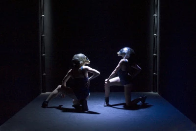 A l'intérieur d'un dispositif rectangulaire lui-même cerné d'un noir insondable, le corps y explore le mouvement et les replis de cette couleur comme le fondement de son émergence.