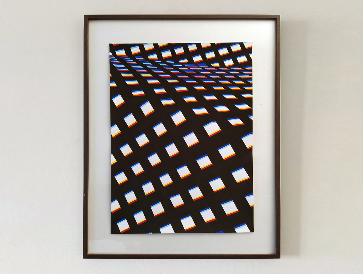 Le travail de la série « In situ » propose des vues d’intérieurs abritant les réalisations formelles. Il s’agit souvent de son atelier dans lequel sont accrochés ou posés ses travaux, ou bien des lieux où ils sont exposés. Cette série s’est poursuivie sur l’observation de l’œuvre d’autres artistes.