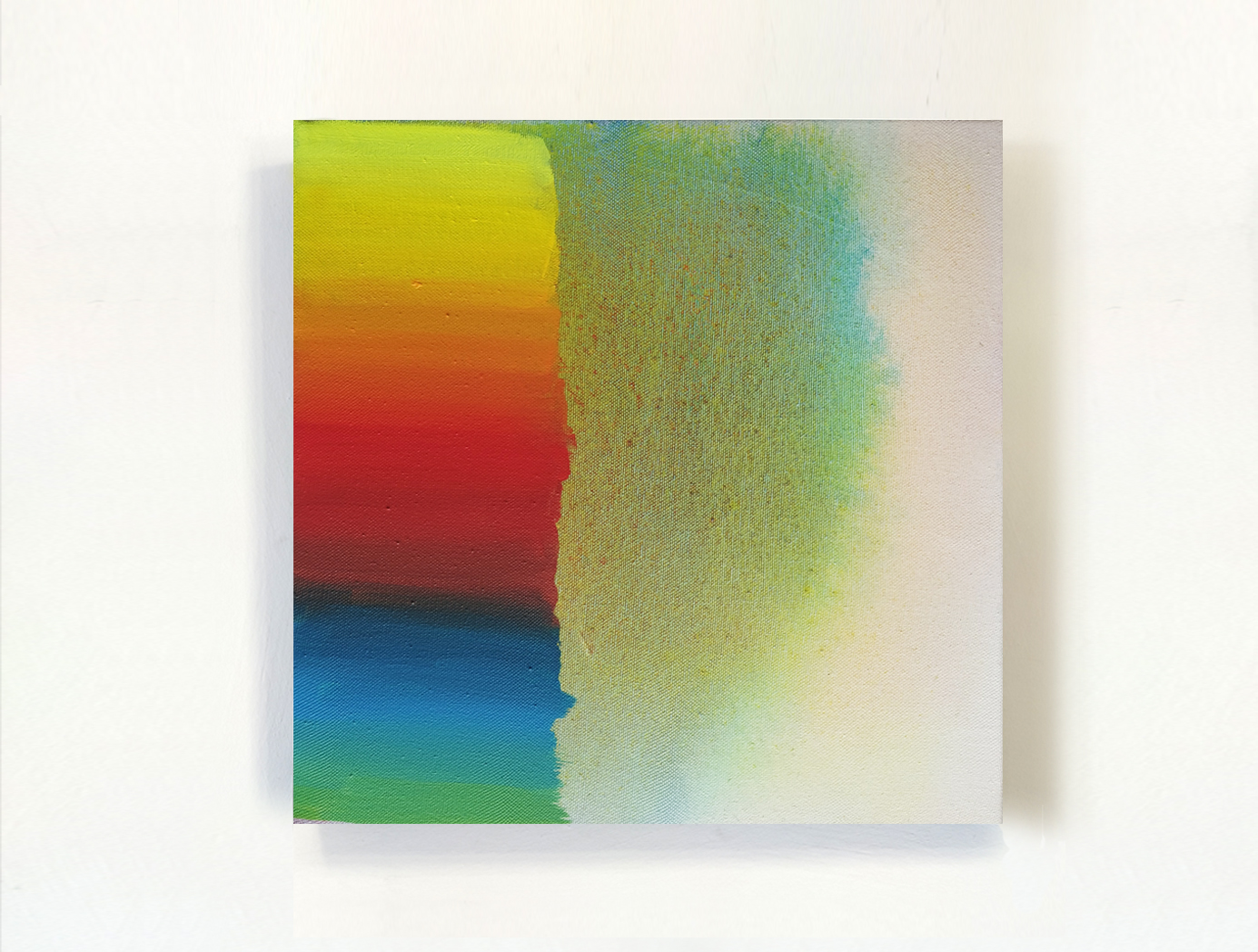 Sa démarche suit deux axes : le premier est celui d’une peinture formelle, le second est celui d’un certain regard posé sur le premier. La succession des étapes, des transformations au cœur de son travail de création est le fil conducteur de ses recherches. La mise en abîme de ces actions est ainsi devenue le processus qui conduit sa démarche.