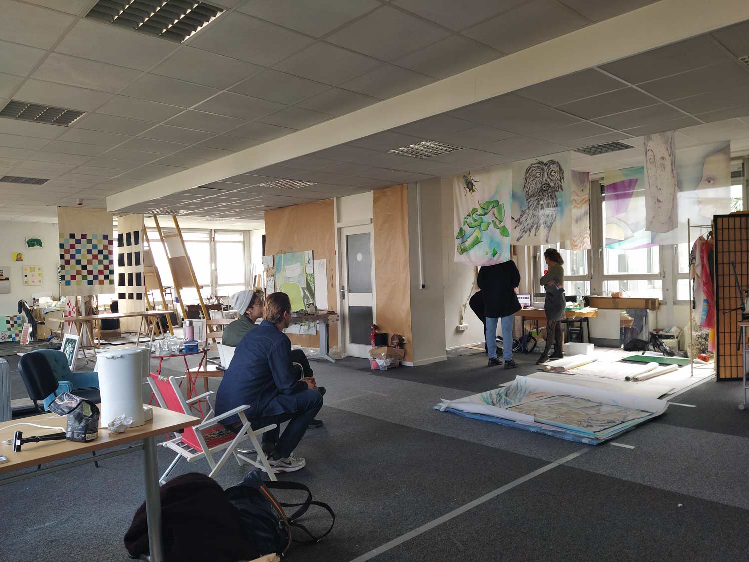 Espace de travail et de recherches partagé avec Béatrice Utrilla, Aria Maillot, Marroussia Sallent, Marianne Plo, Yannis Belatach, Rémi Groussin et Cyril Boixel à La Bouillonnante