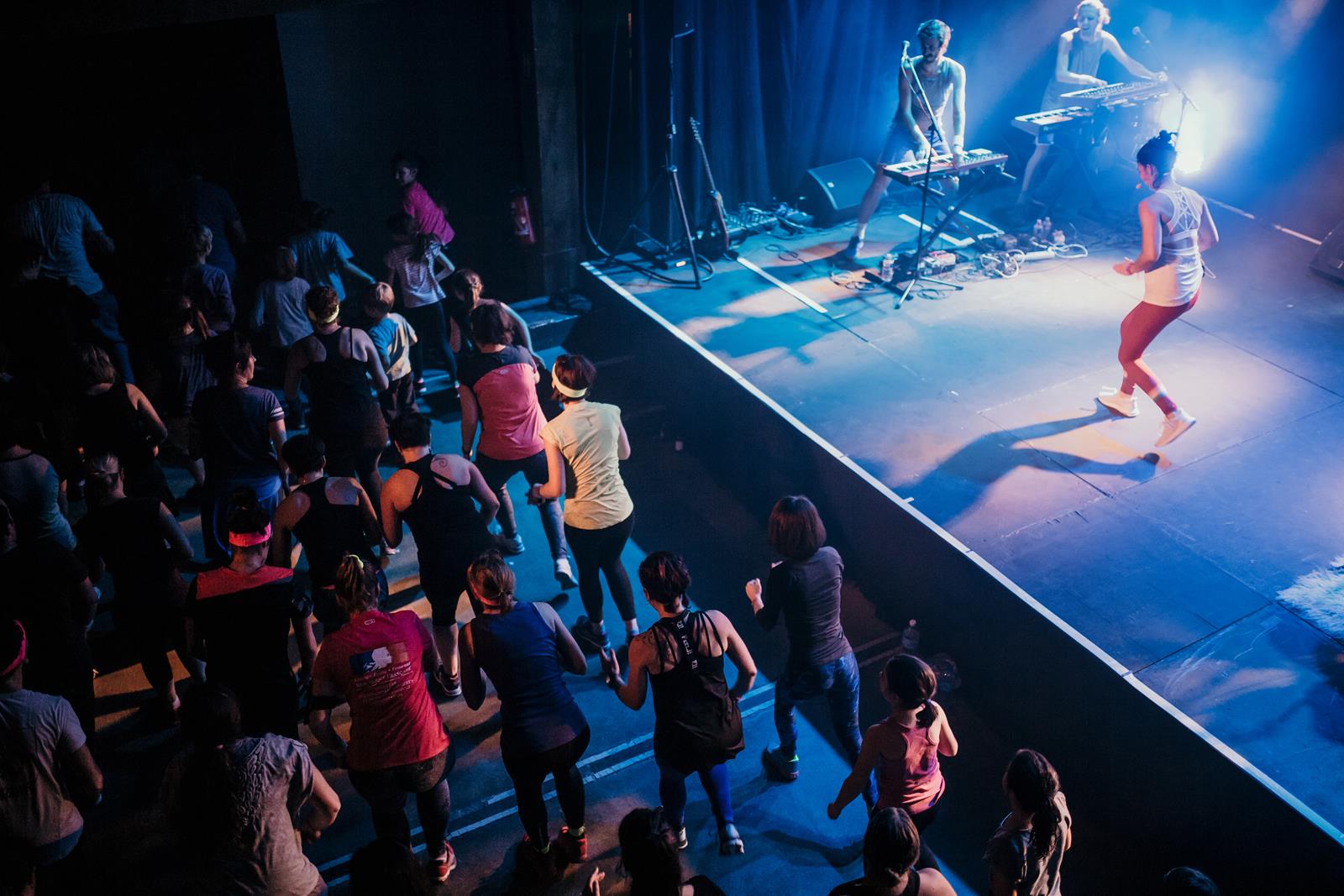 Quatre musiciens et une coach de fitness montent ensemble sur scène et vous embarquent dans un véritable bal de sport ! Un spectacle participatif qui se transforme rapidement en séance de fitness collective et rock n’ roll et qui interroge au passage le culte du corps et la notion d’effort tellement valorisée dans nos sociétés. Entre sueur et réflexion, Baraqué deviendra vite votre salle de sport préférée !
