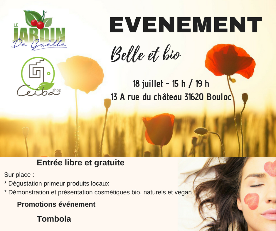 Venez découvrir au premier événement de CEIBA SHOP (les cosémtiques bio, naturels et vegan) en partenariat avec le Jardin de Gaëlle (primeur bio et local).