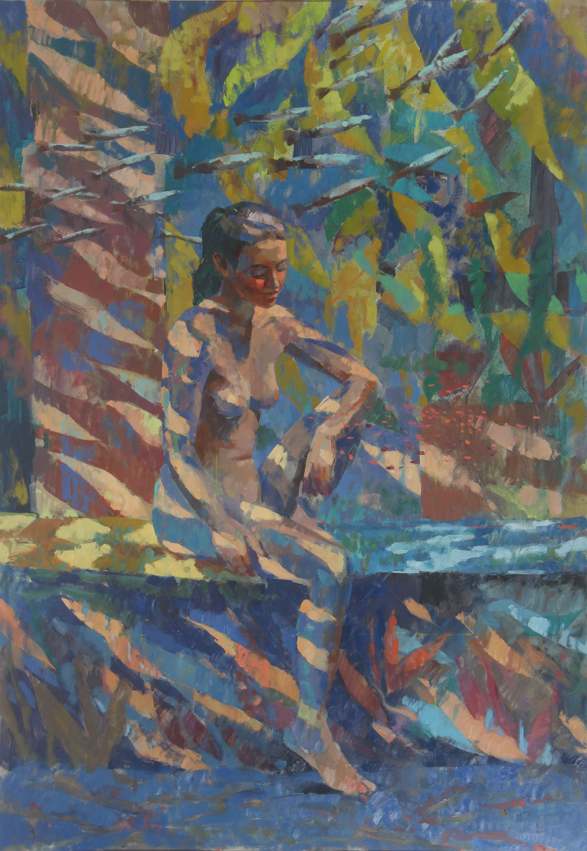 Je suis peintre figurative. Les notions de beauté et d’harmonie sont importantes pour moi. Je cherche un équilibre entre les formes et les couleurs que j’emploie. Avant de travailler en peinture à huile je fais des dessins et des ébauches pour rechercher la composition et faire connaissance du sujet – souvent la forme humaine ; qui est fascinant par sa complexité, beauté et son potentiel narratif. Au départ d’un tableau les contours des objets sont rarement dessinés, c’est déjà inscrit dans mon corps grâce au travail préparatoire. J’arrive à une précision au fut et à mesure en superposant des couleurs et des formes. Cette méthode me permet de construire un tableau en laissant visible l’acte de peindre – des coupes de pinceaux, des traces des anciens pensés plastique. Un tableau c’est comme une distillation des constituants d’un chaos infini d’expériences ; il devrait vibrer.