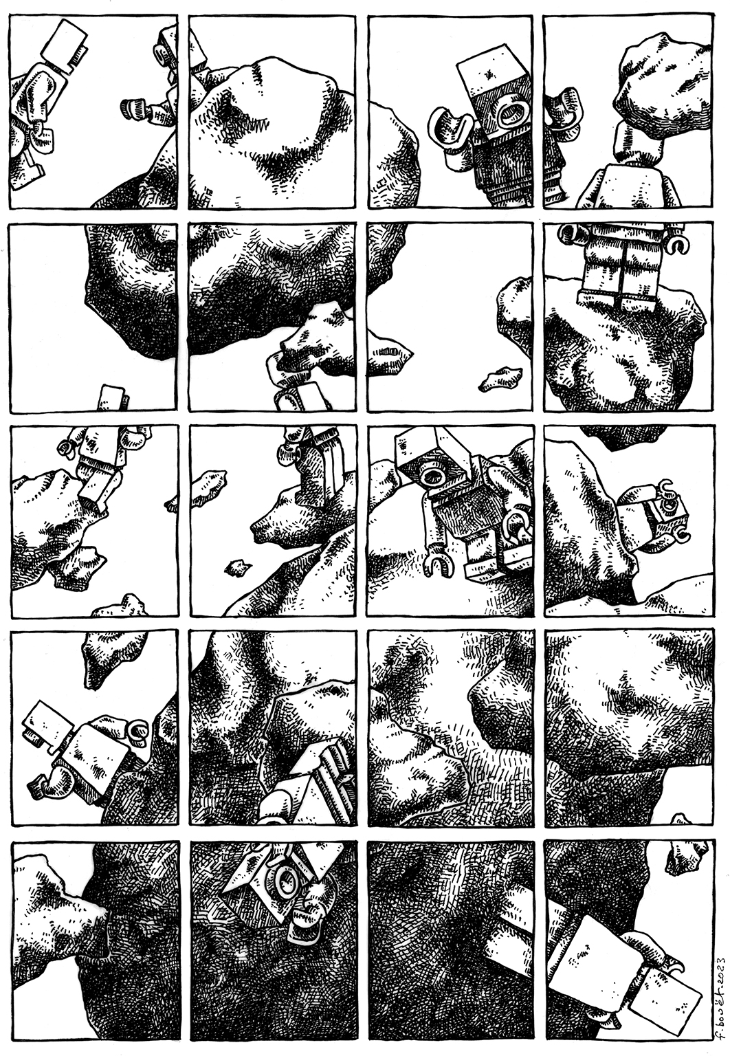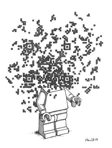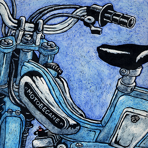 Je réalise mes images à la carte à gratter, à l’encre de chine, à la mine de graphite, en dessin vectoriel, à l’aquarelle, etc…