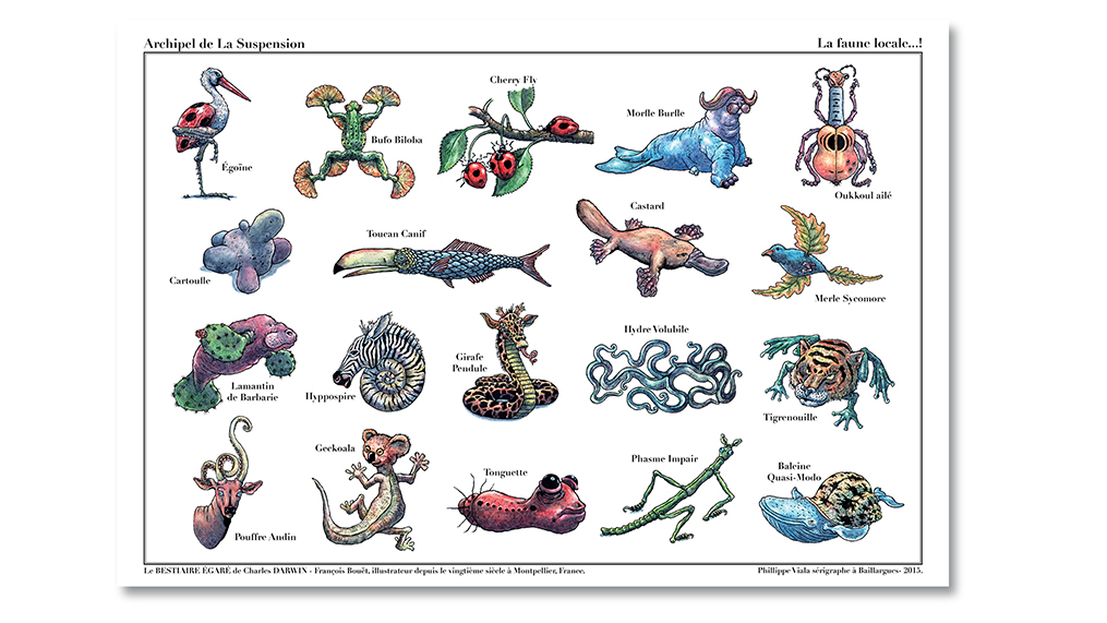 En 2014, j’écris mon premier livre Le Bestiaire égaré de Charles Darwin, rapidement épuisé. Cette première expérience m’encourage dans la voie d’éditeur indépendant. Mes projets dans ce domaine vont de l’album jeunesse et la bande dessinée, au livre d’artiste…