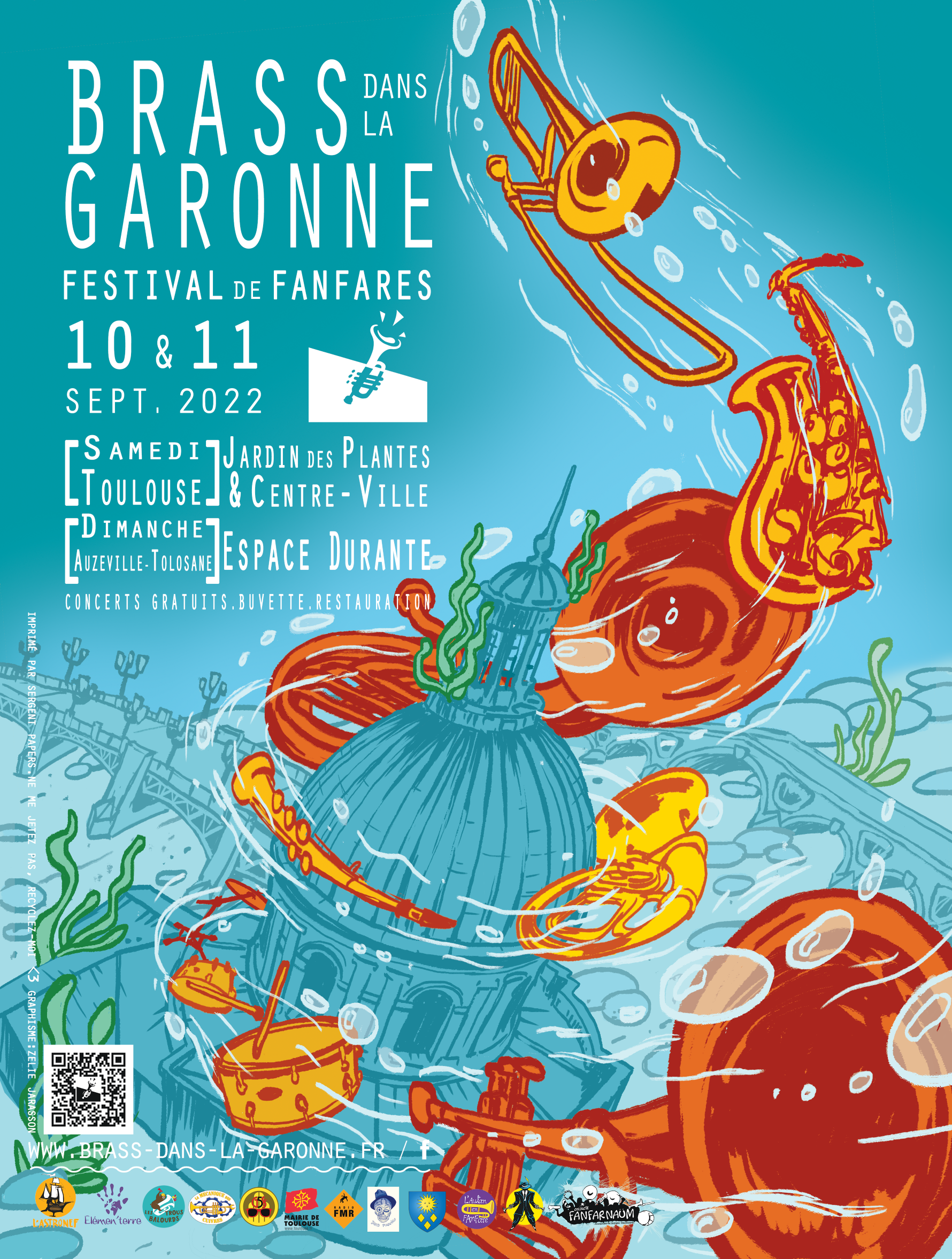 Le Collectif Fanfarnaüm, association de fanfares de rue toulousaines, réunit ses membres pour organiser la 5ème édition de son festival de fanfares, Brass dans la Garonne, les samedi 10 et dimanche 11 septembre 2022. Facile d’accès car localisé en centre-ville de Toulouse et au Jardin des Plantes (samedi), puis à Auzeville-Tolosane (dimanche), cet événement est ouvert à toutes et tous ! Le Collectif vous présentera les plus belles prestations synchronisées de fanfares de rue d’ici et d’ailleurs le temps d’une chorégraphie bien orchestrée, avec un large balayage du grand bassin toulousain… Préparez-vous au gros ménage d’été au Jardin des Plantes !