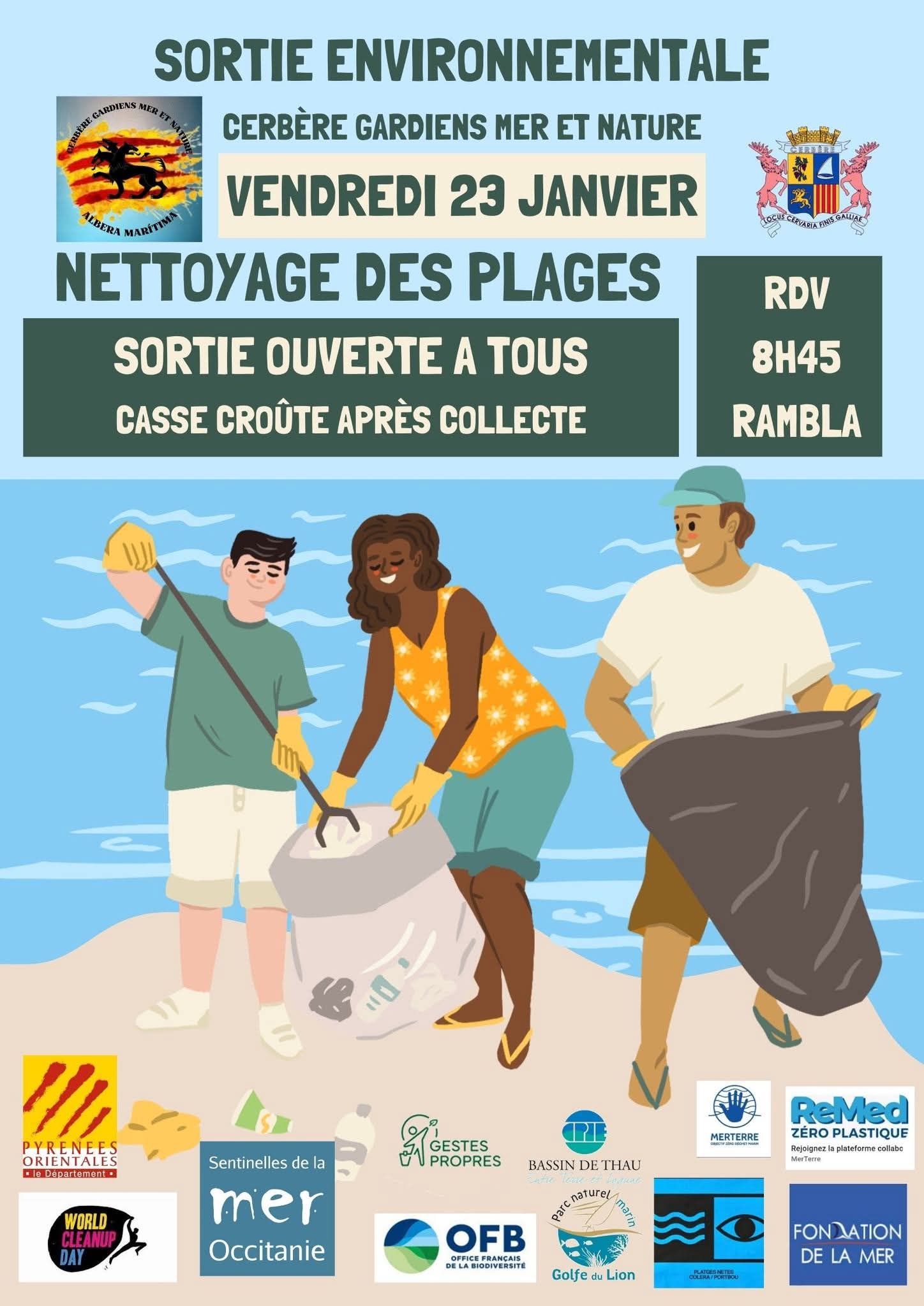 Infos pratiques : Collecte suite a la tempête fin 2025 et celle du 20 et 21 janvier, rdv chalet ASSOCIATION sur Rambla de CERBERE. Prévenir organisateurs