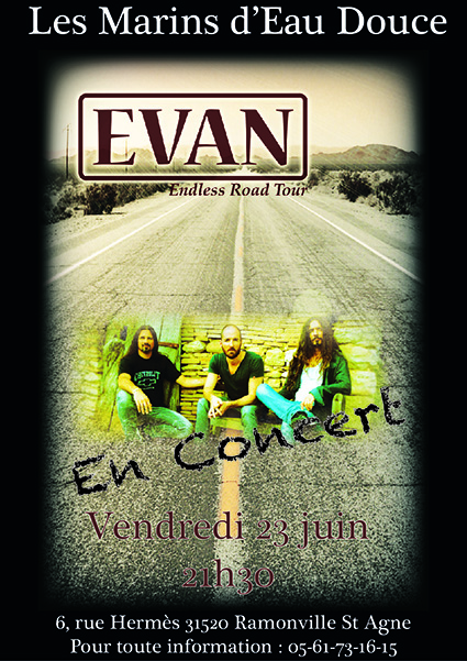 Evan c’est une amitié de longue date. Fabrice, Maxime et Christian nous délivrent des messages, des histoires, des sentiments, sur un son tendrement folk, intensément rock. Des influences comme les Eagles ou encore Edwin Mc Cain, ont amenés les comparses sur une même route. Après avoir sorti leur 1er EP à l’automne 2014, ils sont repérés par un évènementiel Américain et c’est en mai 2015 qu’ils partent pour 5 jours de Show case à Nashville. Ils reviennent plus inspirés que jamais, si bien que le 2ème album ne tarde pas à démarrer. Sa sortie est prévue pour juin 2017.