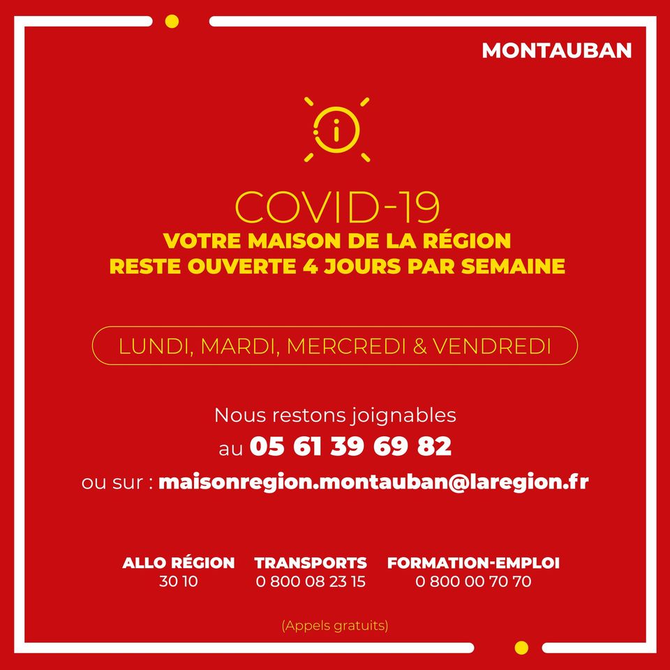 COVID-19 - Ouverture de la Maison de la Région-Montauban
