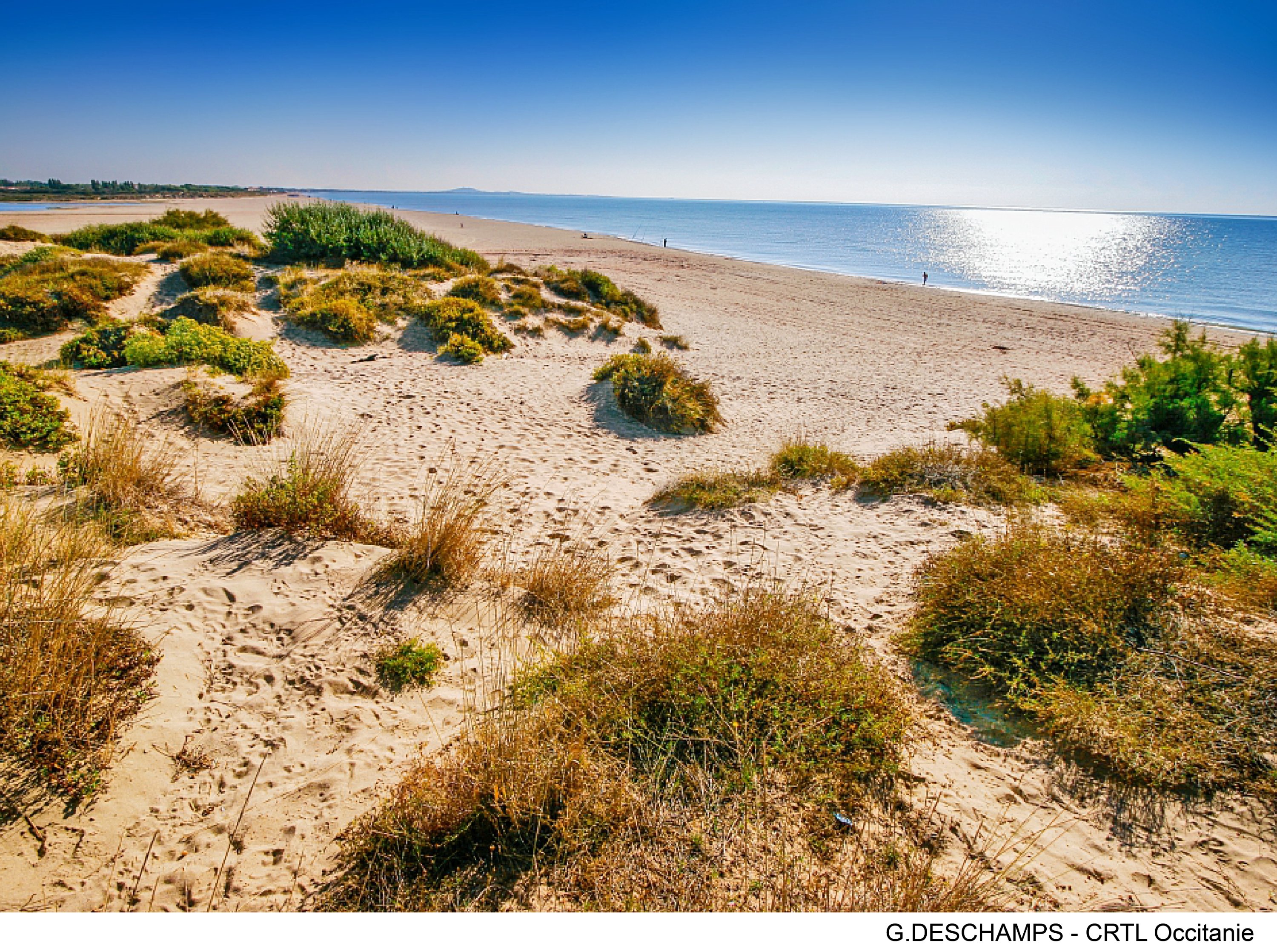 Pour freiner cette érosion, les dunes ont un rôle majeur, puisqu’il s’agit d’un stock de sable important. Celui-ci constitue également une barrière naturelle contre les submersions marines. C’est par ailleurs un habitat naturel primordial pour de nombreuses espèces végétales et animales. Afin de protéger les dunes, des opérations de re-végétalisation et d’installation de ganivelles [3] sont menées avec le soutien de la Région. Ces protections douces ont un rôle important sur les littoraux très fréquentés d’Occitanie : elles permettent de canaliser le public ou de reconstituer les dunes en piégeant le sable.