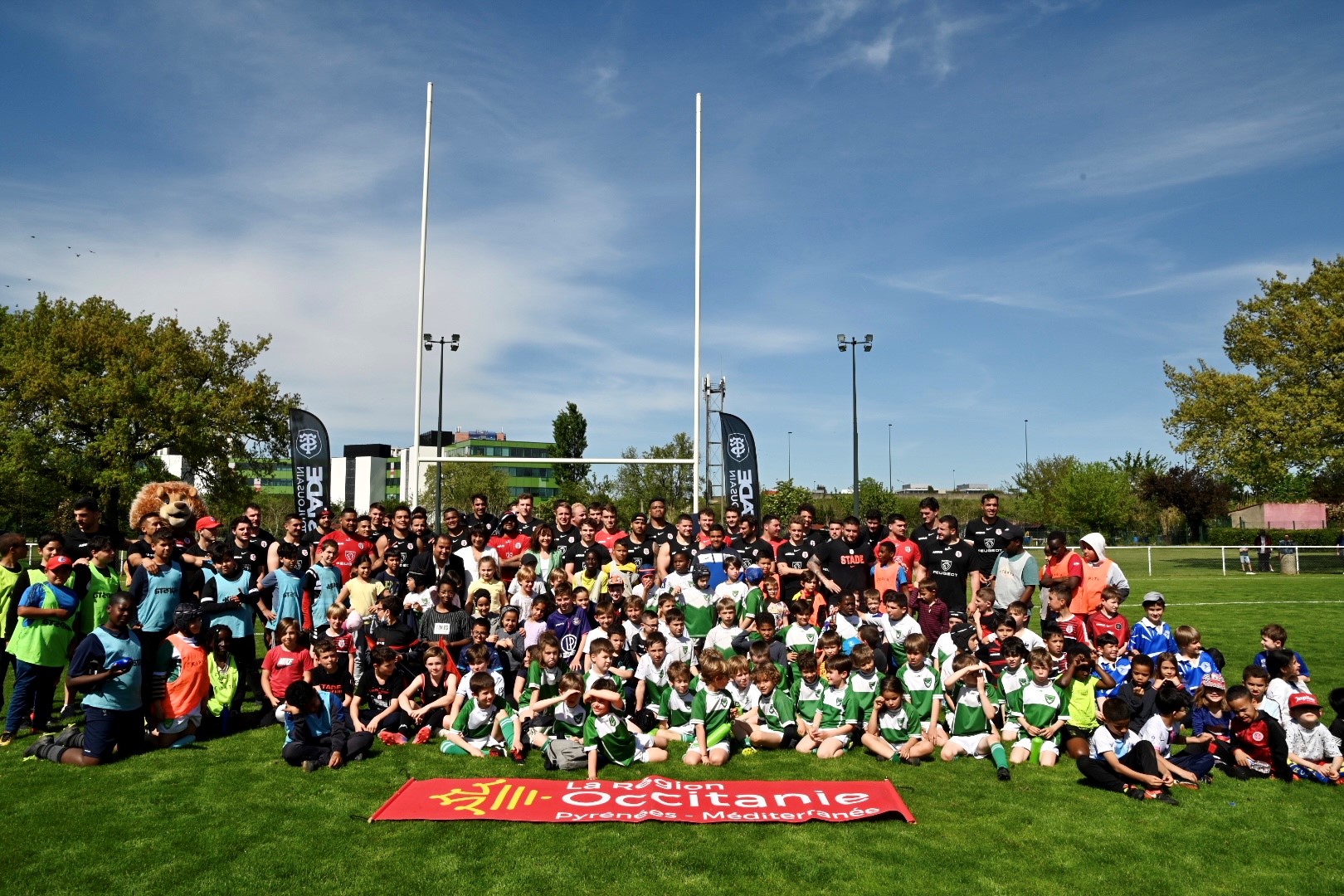Après l’entraînement de l’équipe pro, les 100 jeunes présents ont rejoint les joueurs sur le terrain d’honneur pour des ateliers rugby. Une séance d’échanges et de dédicaces a clôturé l’après-midi.