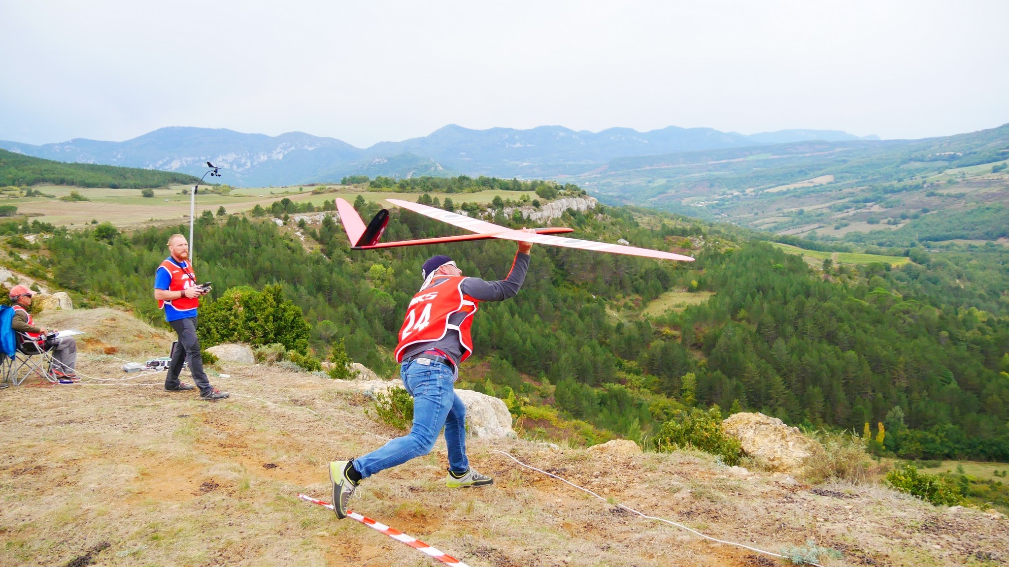 Championnat du Monde pour planeur télécommandé en vol de pente sur les pentes autour de Limoux. Des planeurs de 3m d’envergure évoluent sur des pentes, propulsé par le vent dans une épreuve de vitesse, allent jusqu’à 200km/h selon les conditions de vent.