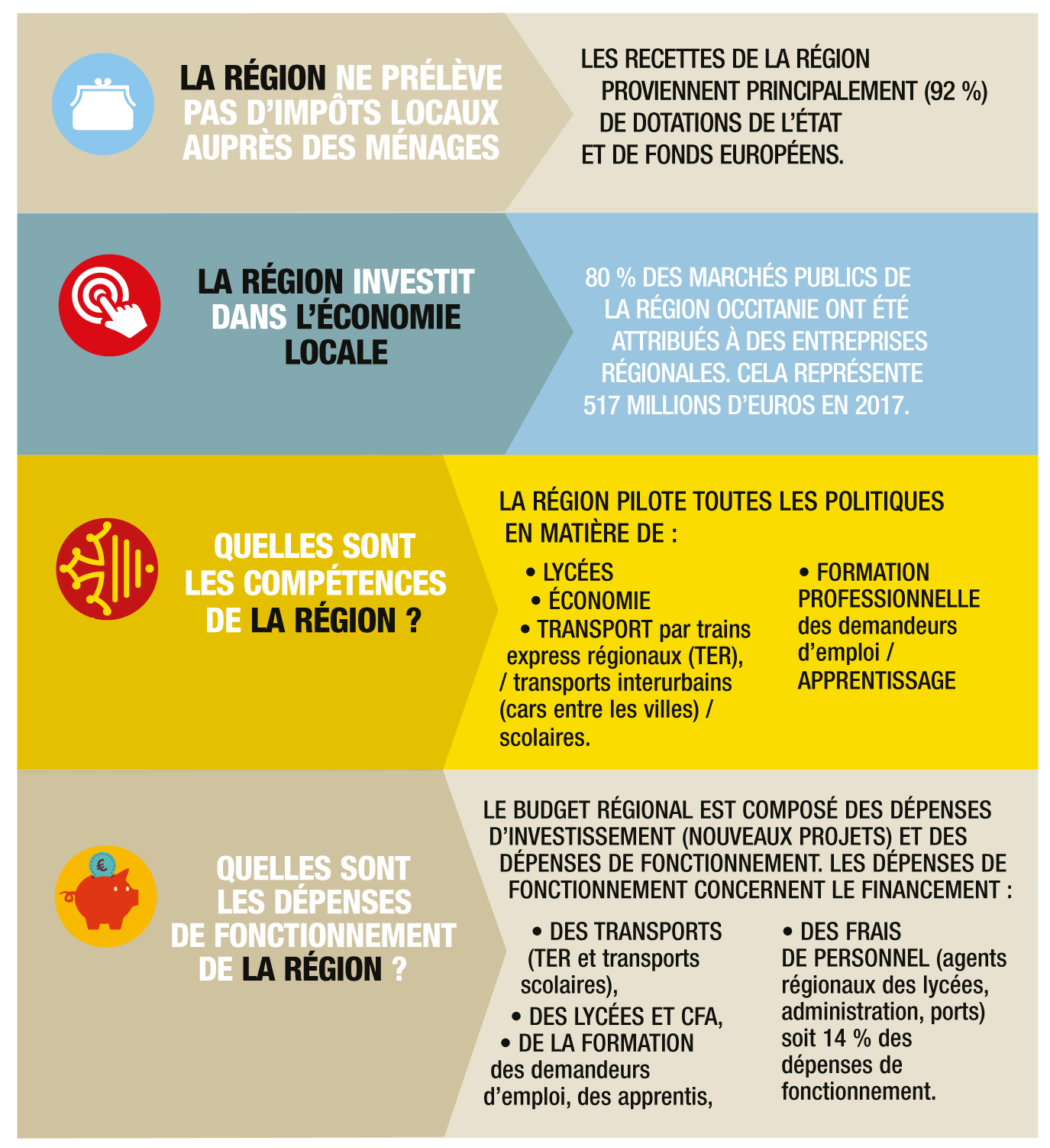 L’Occitanie est attractive et attire chaque année 50 000 nouveaux habitants. Pour faire face à cet afflux de population, la Région maintient un haut niveau d’investissement. En euro par habitant, la Région Occitanie est la première Région de France avec 159 €, contre 134 € en moyenne pour les autres Régions. Ces investissements portent notamment sur la construction et la rénovation de lycées, de bâtiments de recherche et de formation, de musées… La Région se mobilise également avec des aides directes aux acteurs du territoire (plus de 8 000 entreprises soutenues au cours du mandat), et aux habitants (dispositifs éco-chèque logement et mobilité, aide à l’acquisition d’un véhicule électrique…).