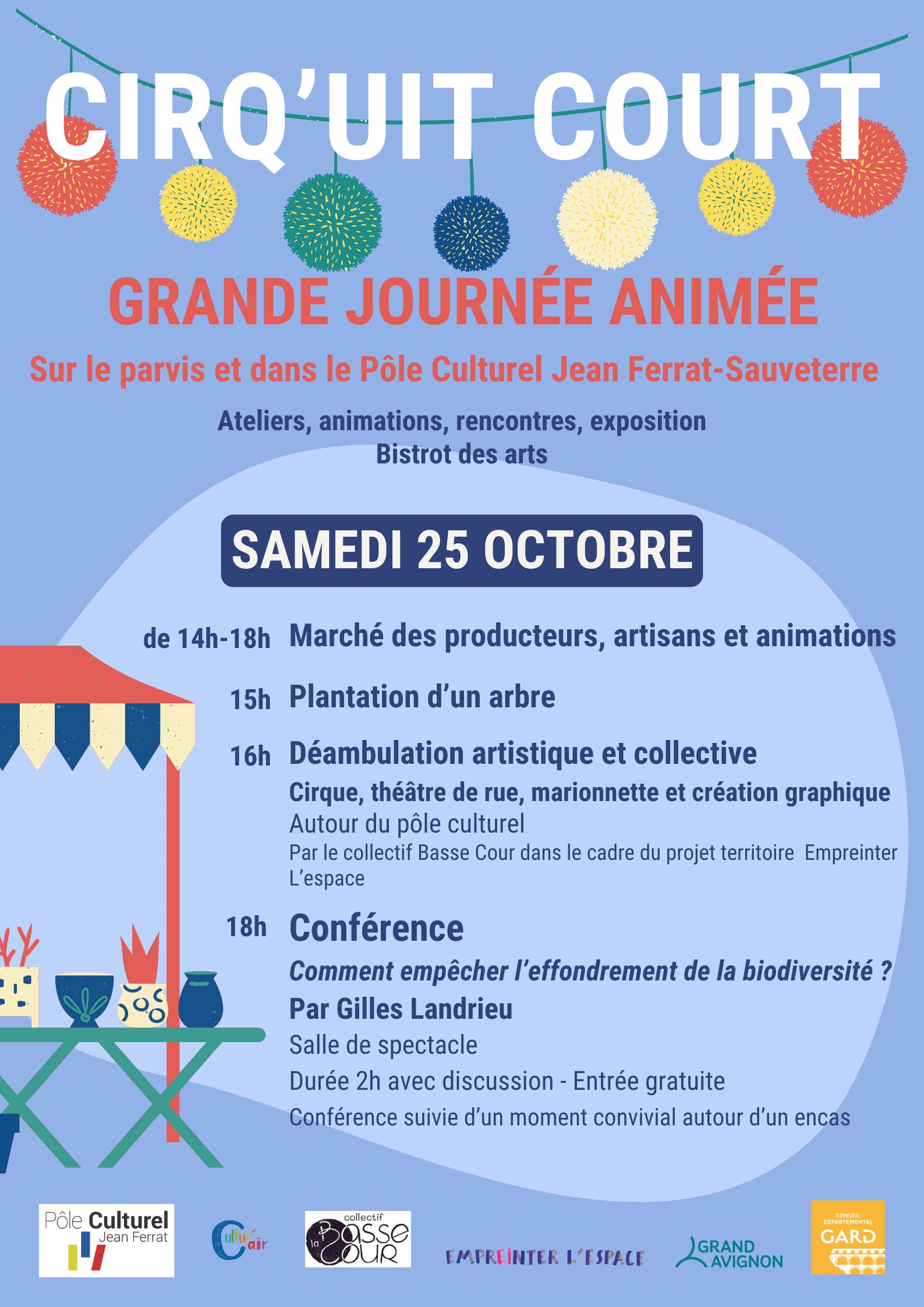 Venez assistez à une déambulation artistique et collective mêlant cirque, théâtre de rue, marionnette et création graphique et vivre l’expérience d’un temps festif et de partage.