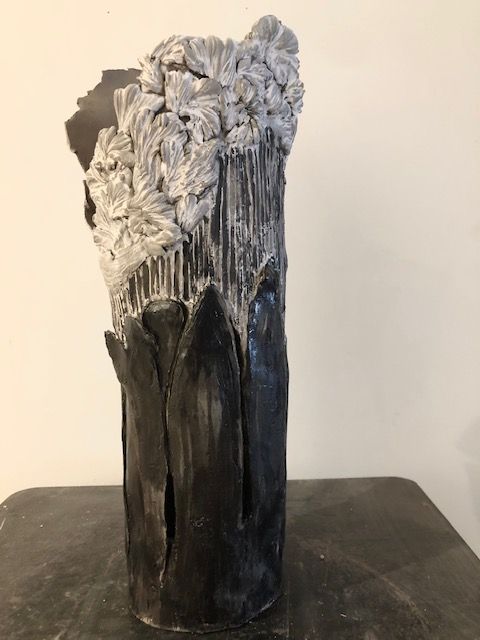 Mes recherches commencent par le dessin, des petits carnets sur lesquels je crayonne à tout moment. L’inspiration naît du quotidien. j’observe des situations réalistes que je transfère dans un monde imaginaire.J’aime ce décalage qui apporte de la poésie. et pour mettre ces croquis en volume j’ai choisi la terre car elle réserve beaucoup de possibilités. Ce matériau peut être parfois généreux : d’un accident ou d’une maladresse peut naître une belle émotion. la beauté naît souvent de la contrainte mais elle peut aussi naître d’un accident.Quant à la surface j’évite l’ajout de détails, de couleurs ou d’émail, laissant à la terre ses couleurs naturelles qui lui confèrent vérité, humilité.