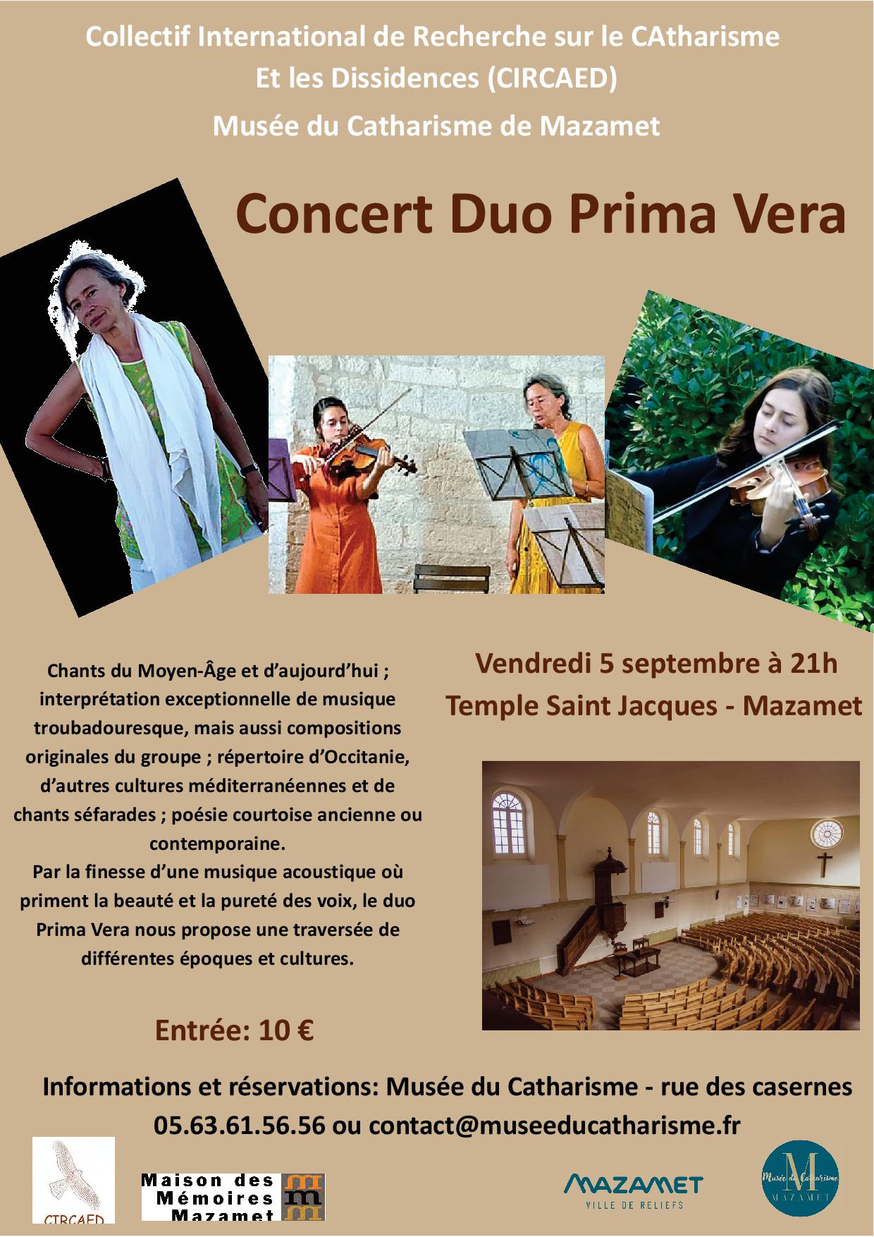 Concert Duo Prima Vera au Temple St Jacques : Chants du Moyen-Âge,