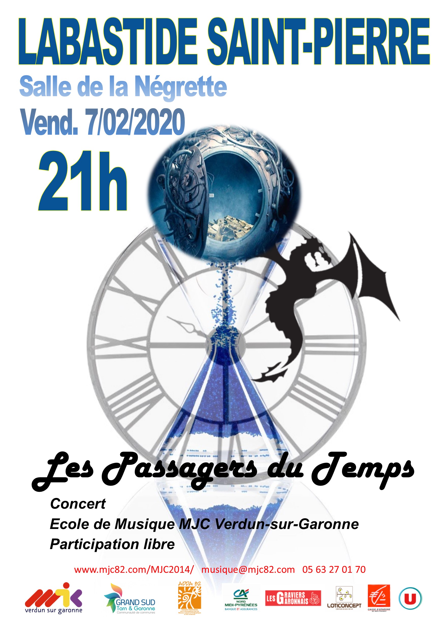 Ce concert est une invitation à un voyage musical à travers le temps conduit par divers ensembles de l’école de musique. De petites scènes imaginées par la classe de M.A.O. vont nous guider, nous éclairer et faire le lien entre les différentes destinations de nos passagers du temps. Comme une capsule à voyager dans le temps, nous explorerons plusieurs moments de notre histoire passée et future. Élèves et professeurs de l’école de musique vont déployer les ailes de leur imagination pour offrir aux spectateurs un agréable périple.
