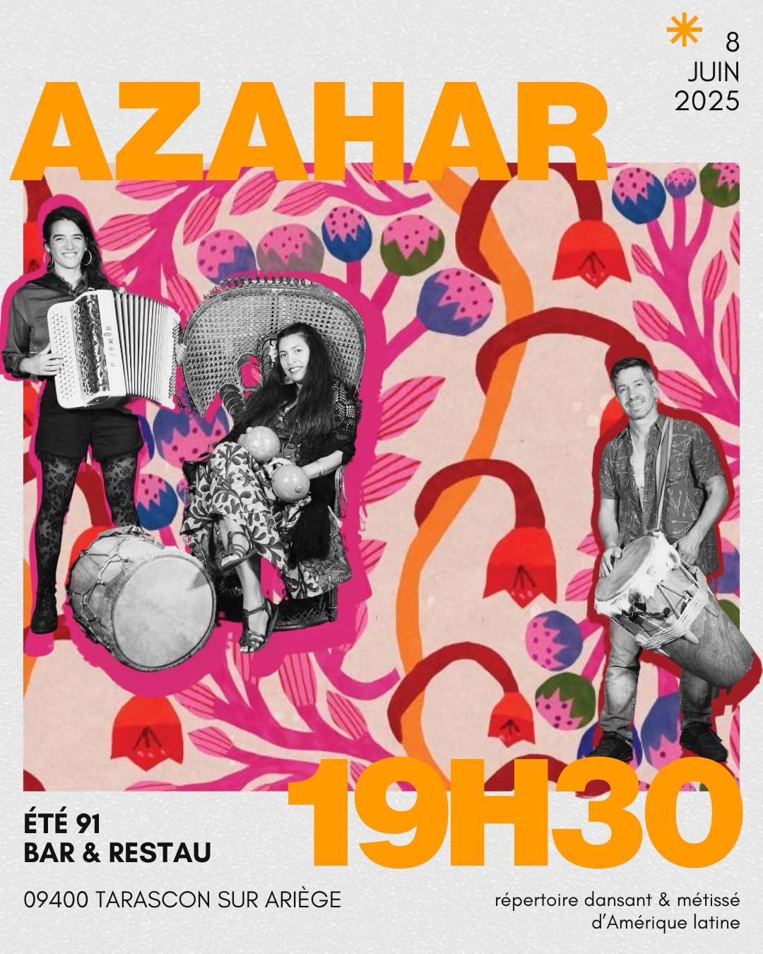 Le dimanche 8 juin, voyagez tout en musique avec Azahar, ce trio ariégeois qu’on adore qui vous transporte en Amérique latine à travers leur répertoire dansant et métissé !