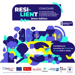 RESILIENT est un concours co-organisé par Open Tourisme Lab et la Région Occitanie et le CRTL Occitanie, dans le cadre du programme Tourism Tech For Good, cofinancé par le FEDER et avec le concours de la Banque Populaire du Sud et le soutien de l’ADEME Occitanie et du CEEBIOS.