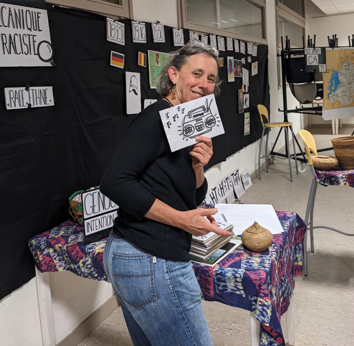 J’y mets en scène mon expérience (des savoirs-chauds), apporte des éclairages sur l’histoire (les savoirs-froids), alerte sur la construction du racisme, interpelle sur le rôle des médias, questionne les implications et intérêts de la France au Rwanda, raconte la place d’une jeune coopérante technique dans un pays sous tension. En montrant le déroulé de la mécanique raciste sur une frise chronologique de la fin du XIX ème siècle au 6 avril 1994.