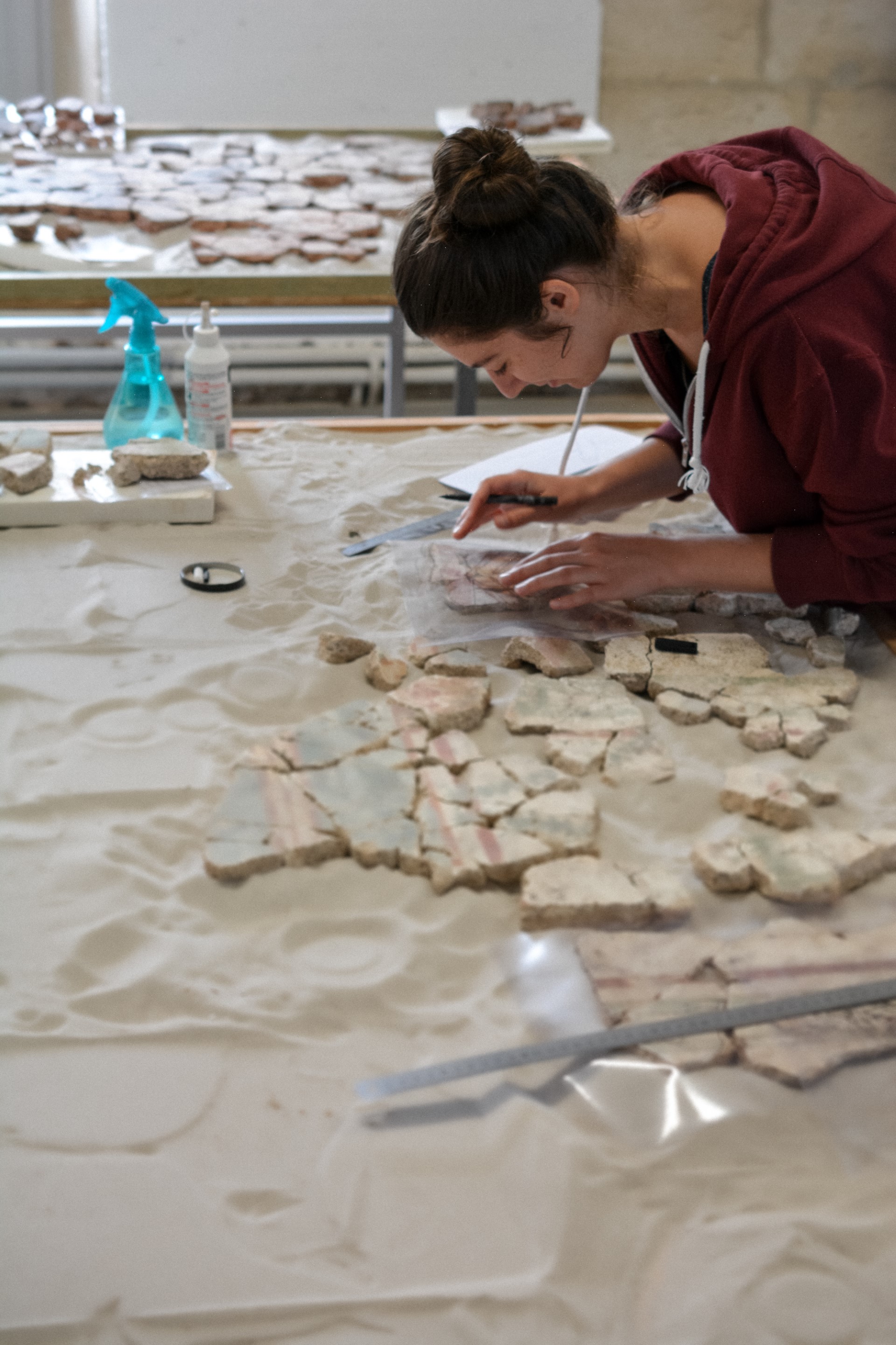 Clara Prats est doctorante à l’université de Toulouse 2, rattachée au laboratoire TRACES et travaille sur les candélabres dans la peinture murale en Gaule romaine. Dans le cadre d’un contrat CIFRE (convention de partenariat avec l’université de Toulouse), une partie de son temps de recherche se déroule au musée et est consacré à l’étude des collections d’enduits peints.
