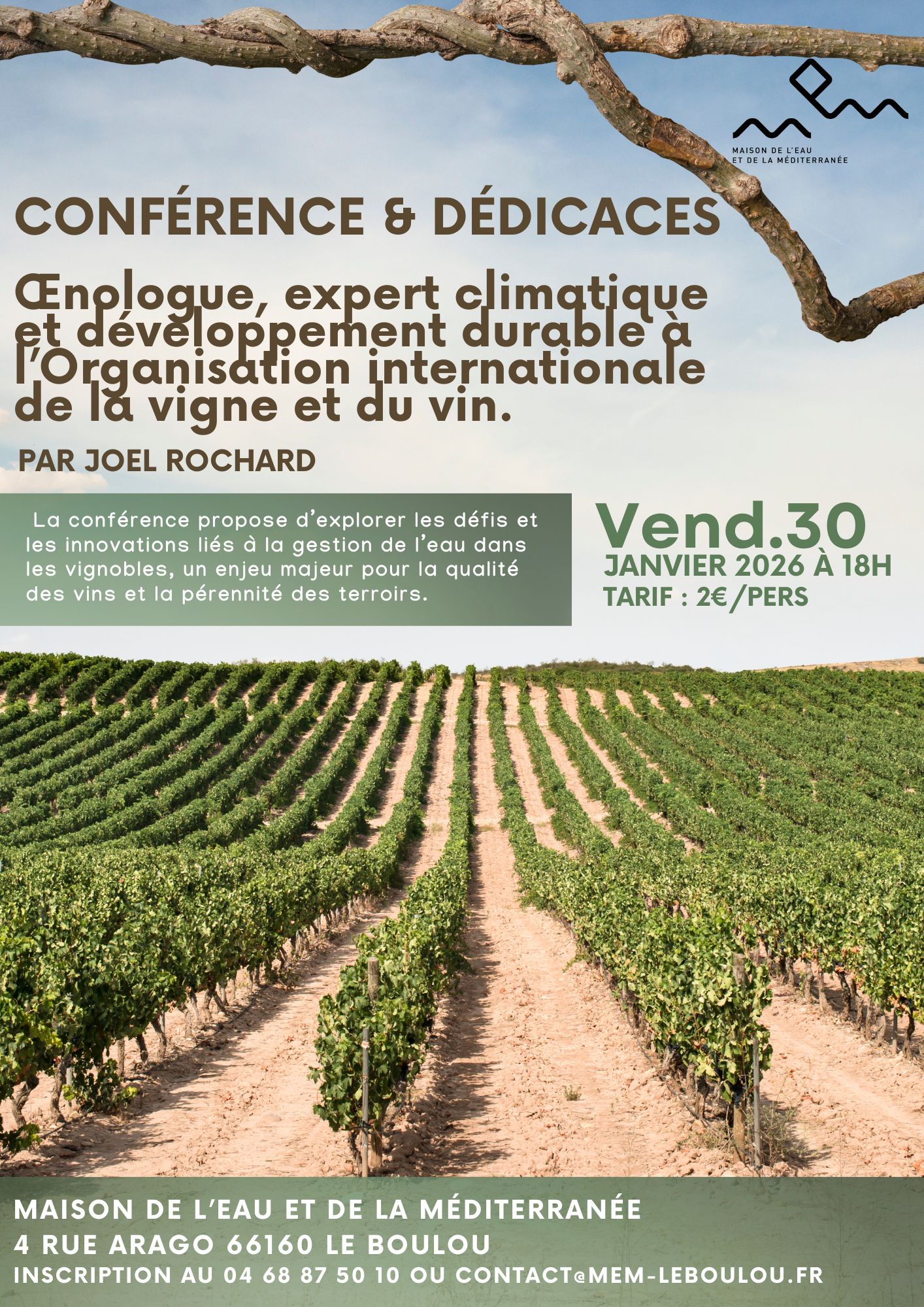 Conférence/ Dédicaces : le 30 Janvier à 18h00. Œnologue, expert climatique et développement durable à l’Organisation internationale de la vigne et du vin.