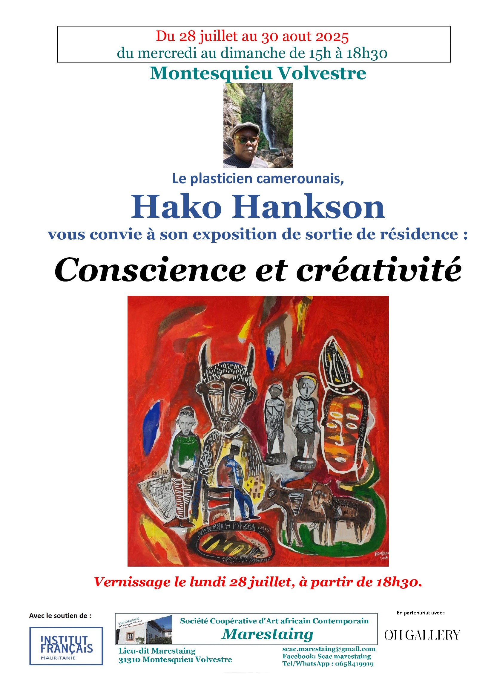 L’œuvre de Hako est une véritable ode au passé et mythes des anciennes civilisations africaines. Cette exposition présente les œuvres crées durant 6 semaines. Qu’a-t-il à nous dire du monde invisible, secret qui nous entoure, ici dans le Volvestre, et dont nous n’avons pas conscience ?