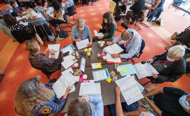Durant la deuxième session, les membres ont repris l’ensemble des propositions afin de les prioriser en fonction de leurs attentes. Un travail de synthèse en vue de la votation citoyenne a également été mené.