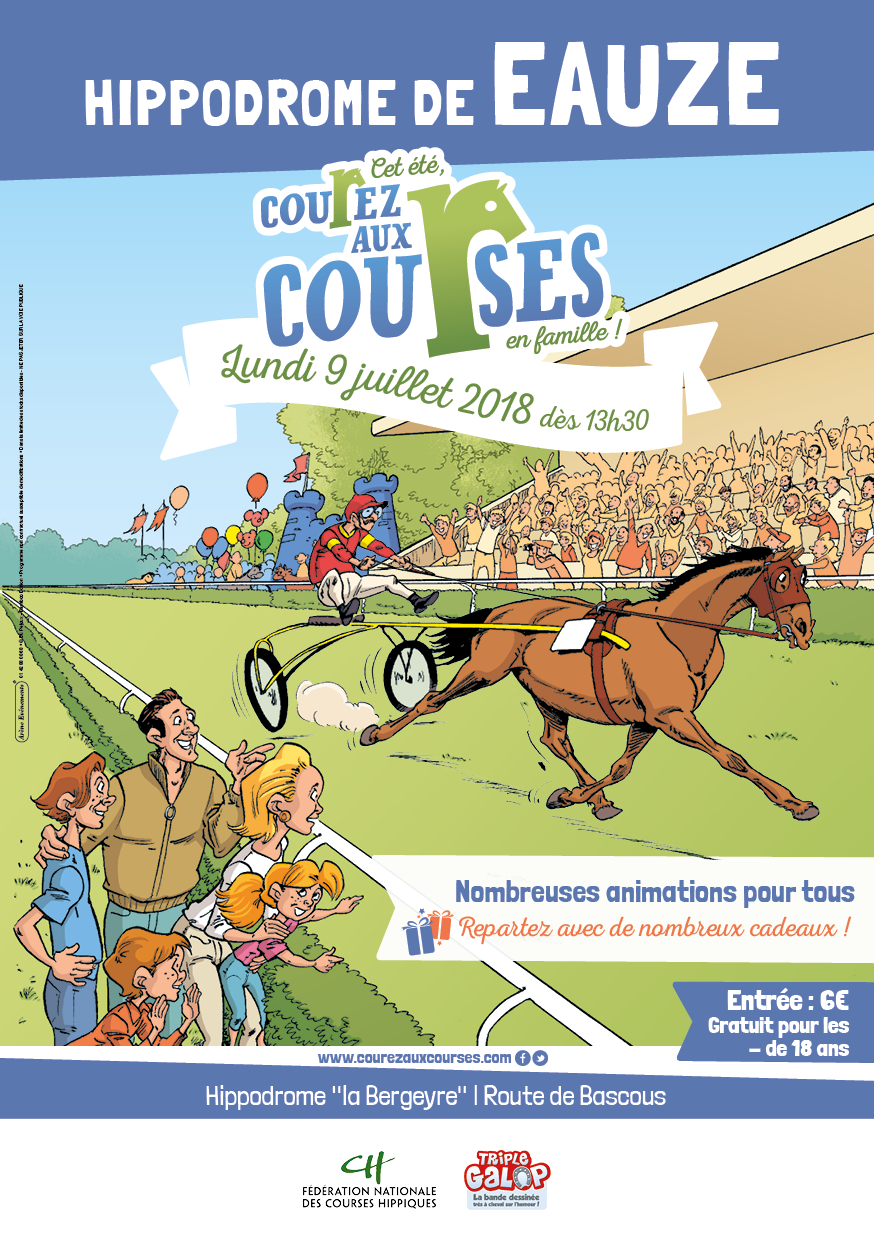 Courez aux courses c’est : des courses de chevaux, des animations nombreuses et variées et une pléiade de cadeaux et de surprises, qui rythmeront la journée de courses de l’ Hippodrome de Eauze, le lundi 9 Juillet 2018 dès 13h30.
